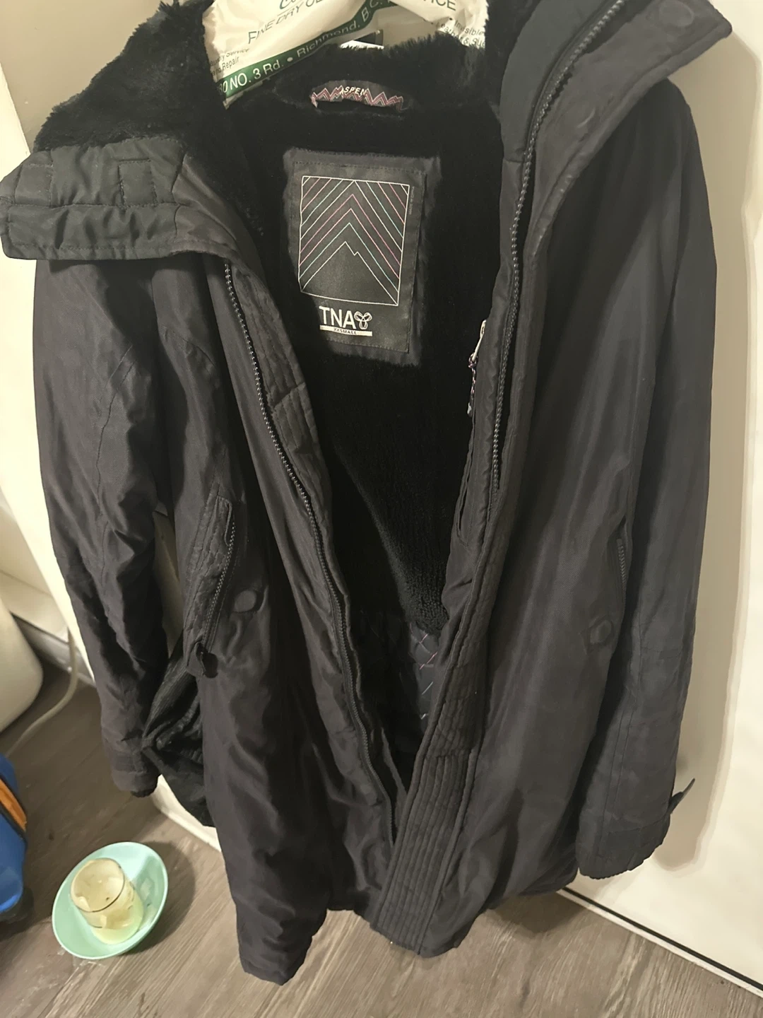 Selling a TNA Aspen parka! It's in great condition and perfect for the Canadian winter. The jacket is black and has a faux fur lining to keep you warm and cozy. Feel free to message me if you're interested!