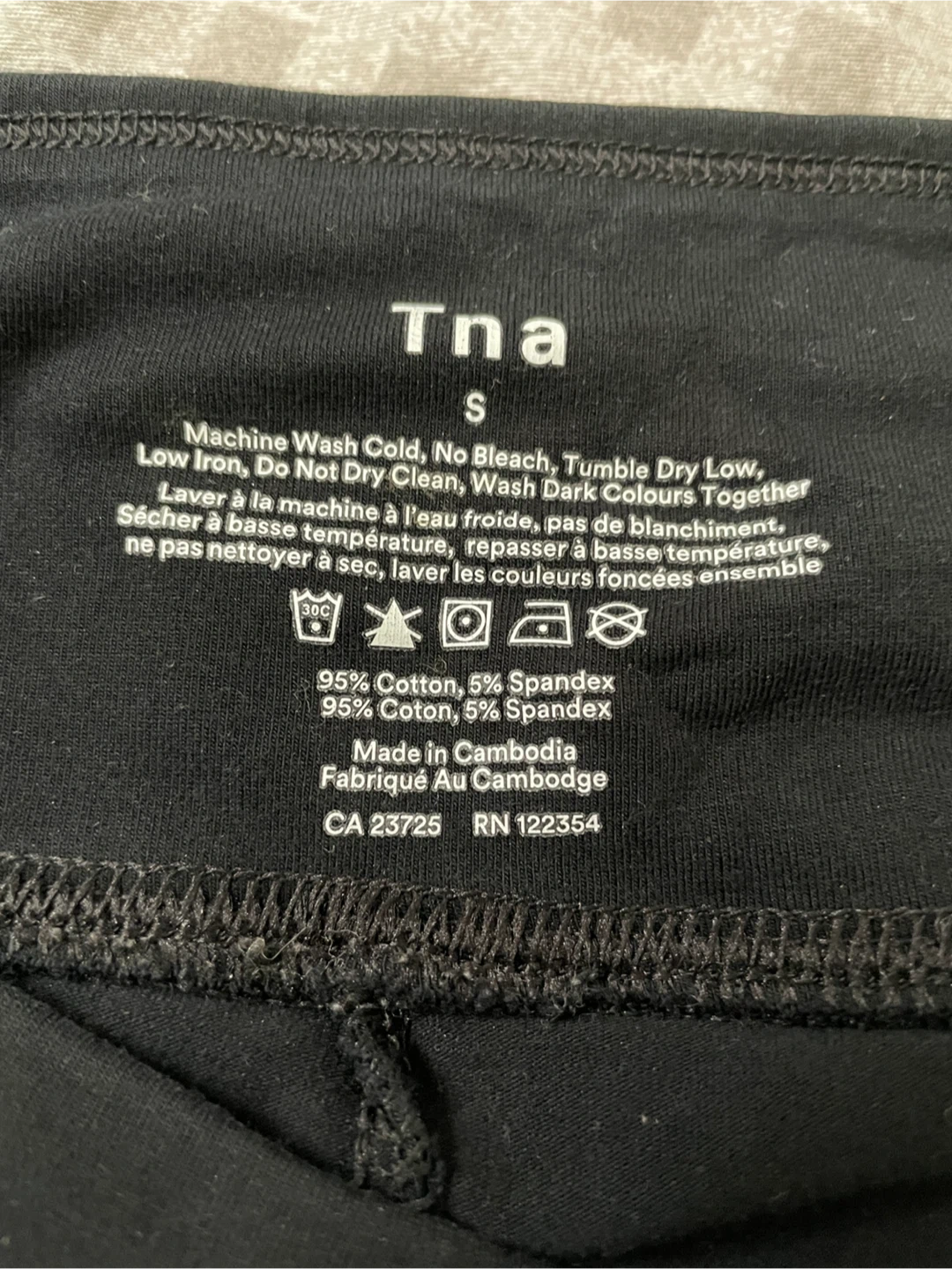 Selling a pair of TNA leggings in black! They're a size small and made with a comfy blend of 95% cotton and 5% spandex. Perfect for everyday wear or working out!
