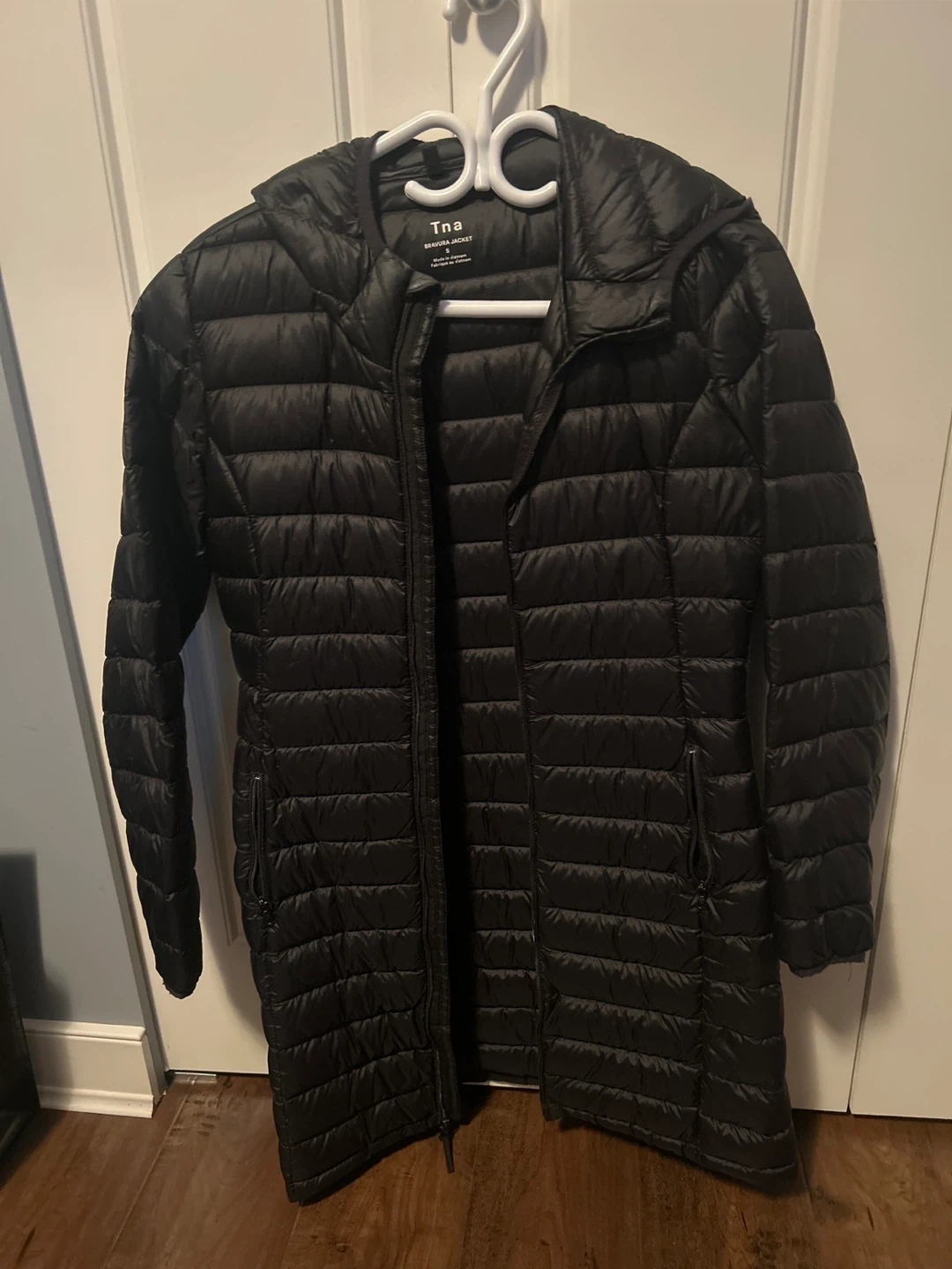 Selling a Tna Bravura Jacket in black, size small. It's in great condition and ready for a new home! This jacket is perfect for staying warm and stylish during those chilly Canadian days.