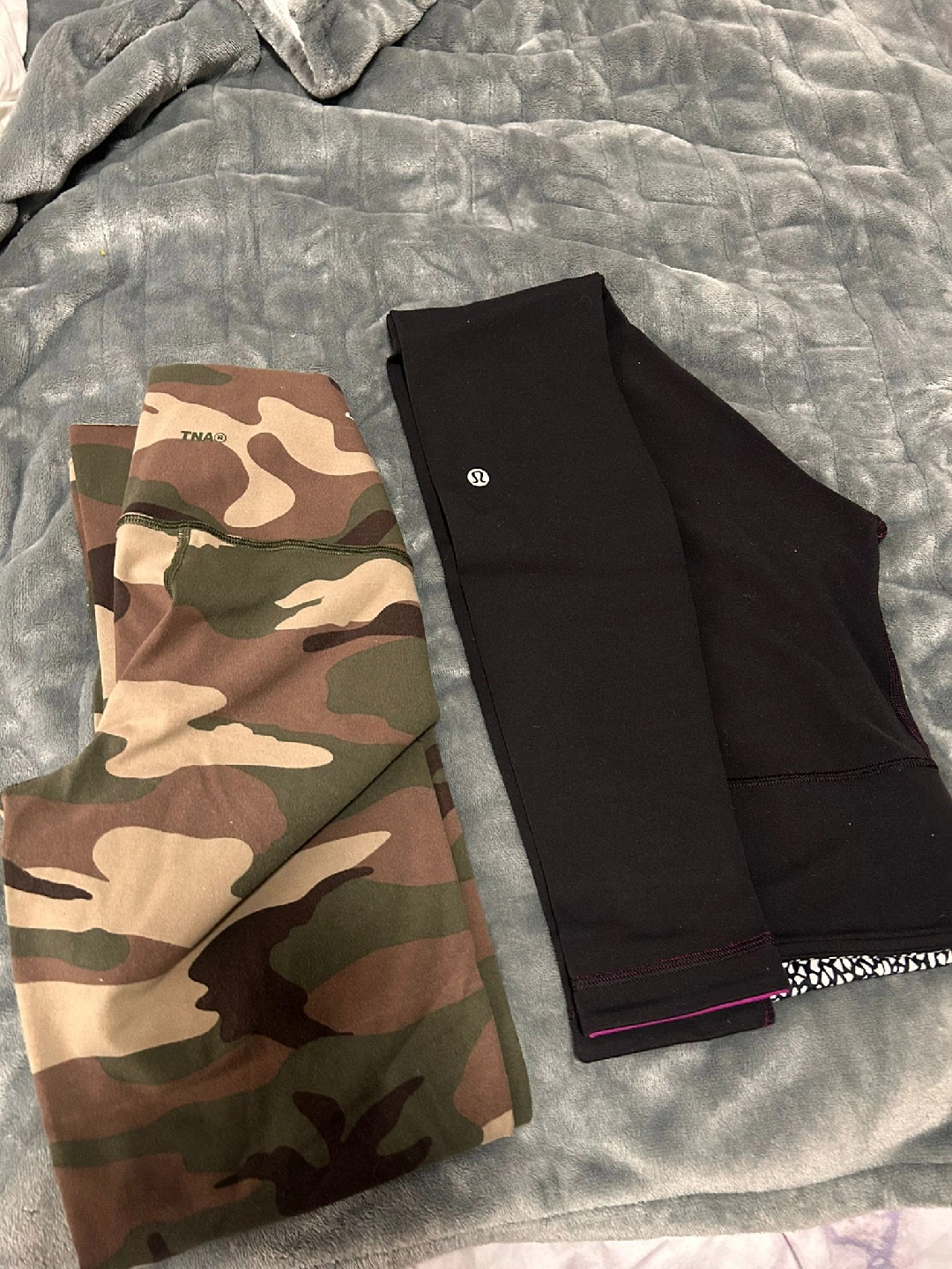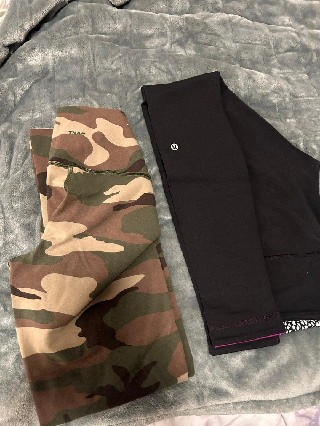 Selling a pair of TNA leggings in a cool camo print! They're a size medium and brand new never used. Size 6 Lululemon leggings used 2 times Perfect for workouts or just lounging around