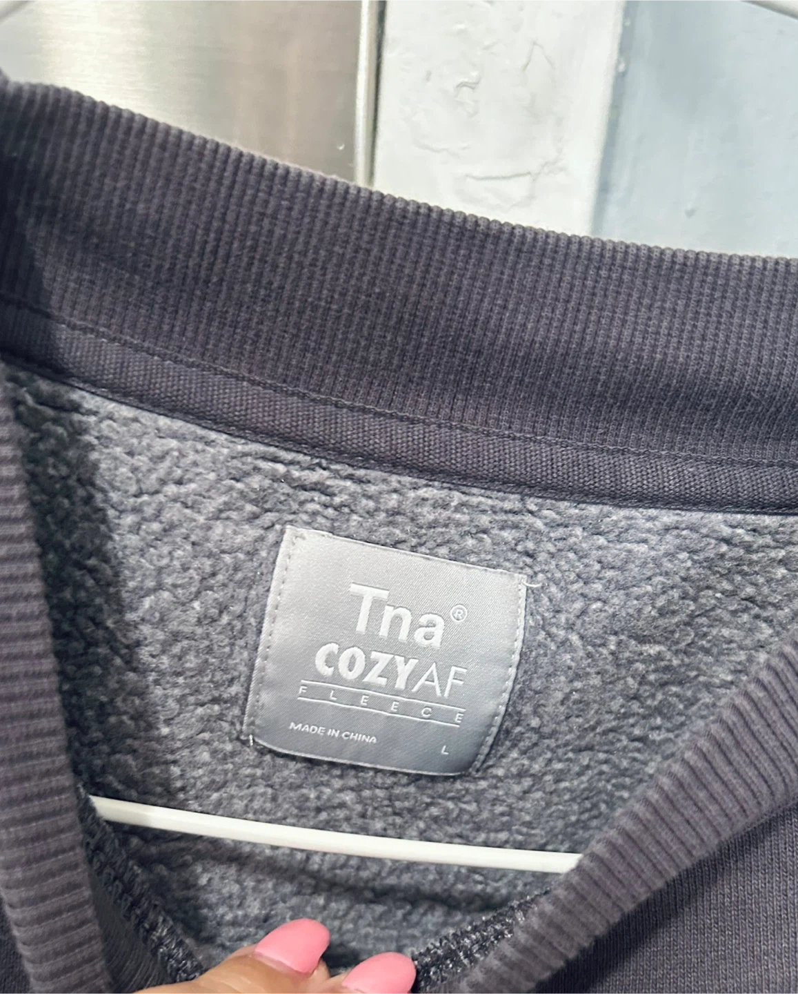 Selling a Tna Cozy AF fleece sweatshirt in size L. It's in great condition and super comfy! Perfect for cozying up on chilly days.