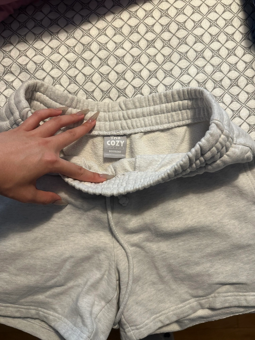 Selling a pair of TNA Cozy Boyfriend shorts in grey! They're super comfy and perfect for lounging around or running errands. The material is soft and cozy, just like the name suggests! Size M