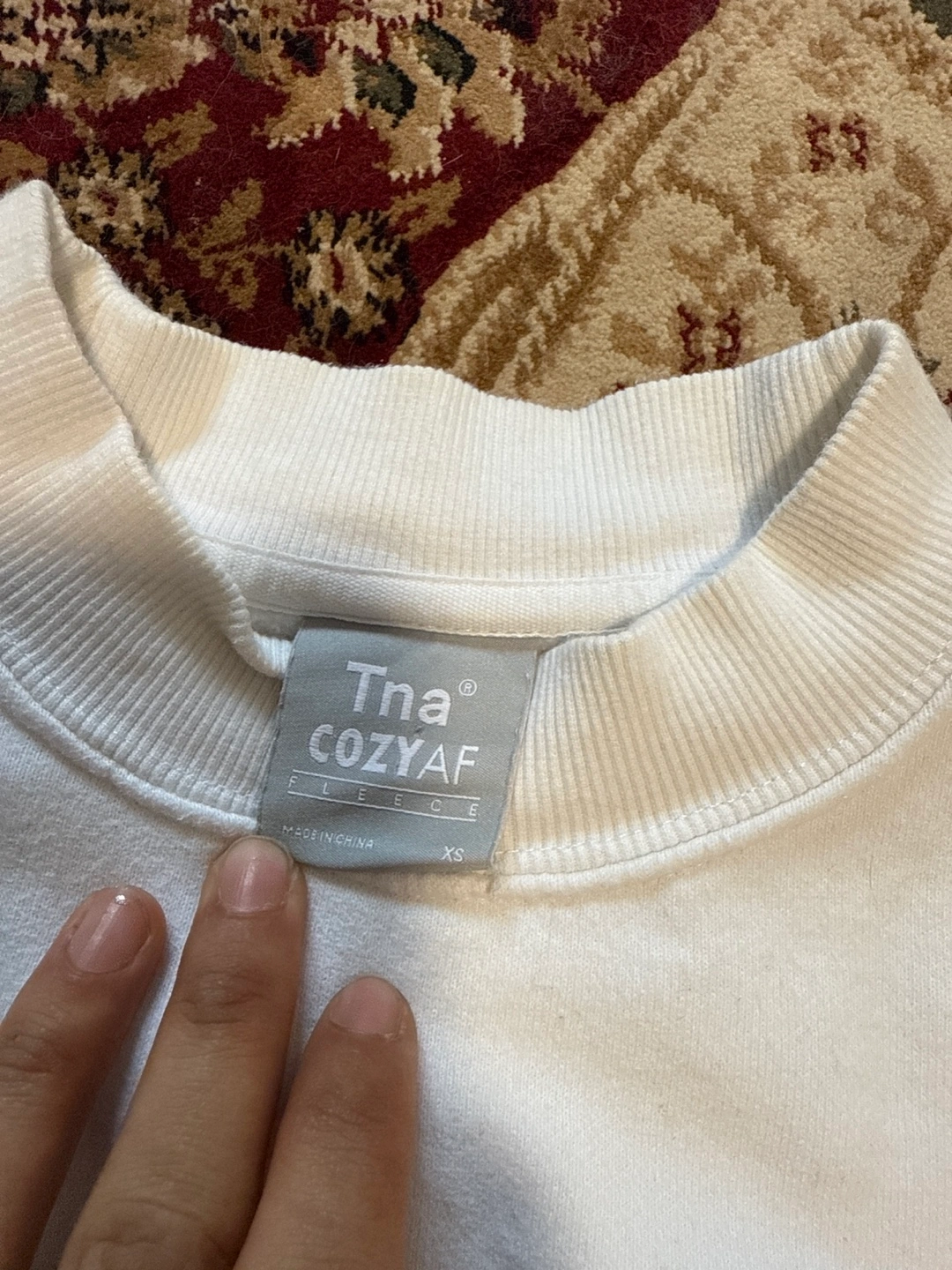 Selling a Tna COZYAF fleece in white, size XS. It's in great condition and ready for a new home!