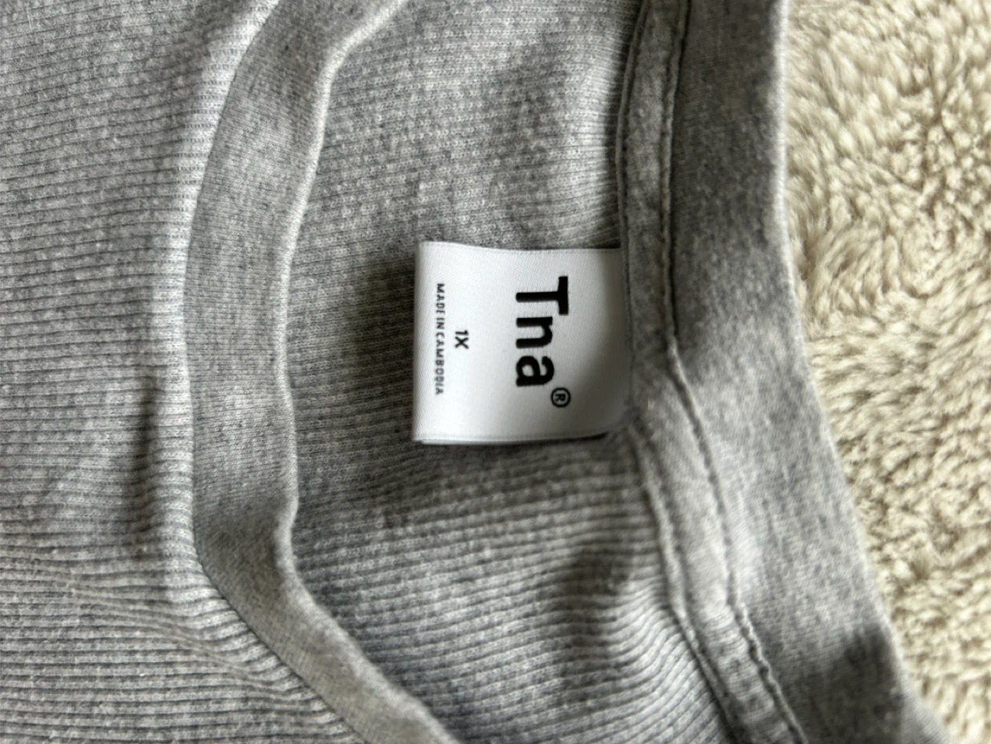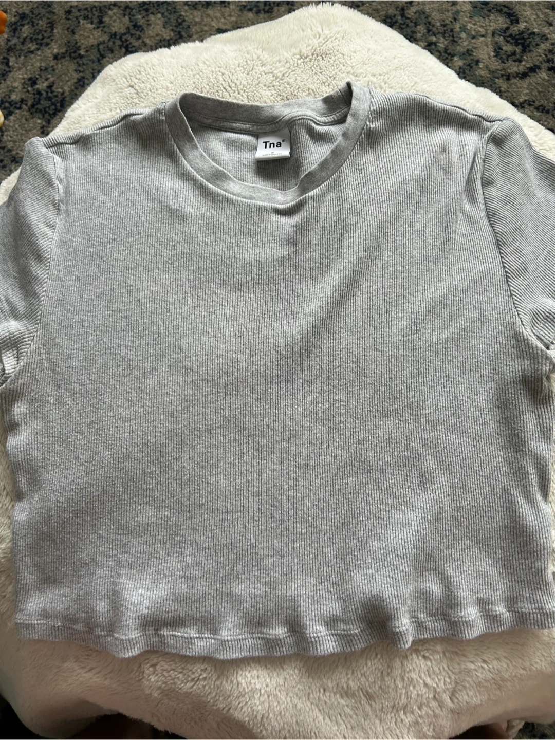 Selling a Tna ribbed t-shirt in a lovely grey colour! It's in great condition and is a size 1X. Perfect for a casual, comfy look!
