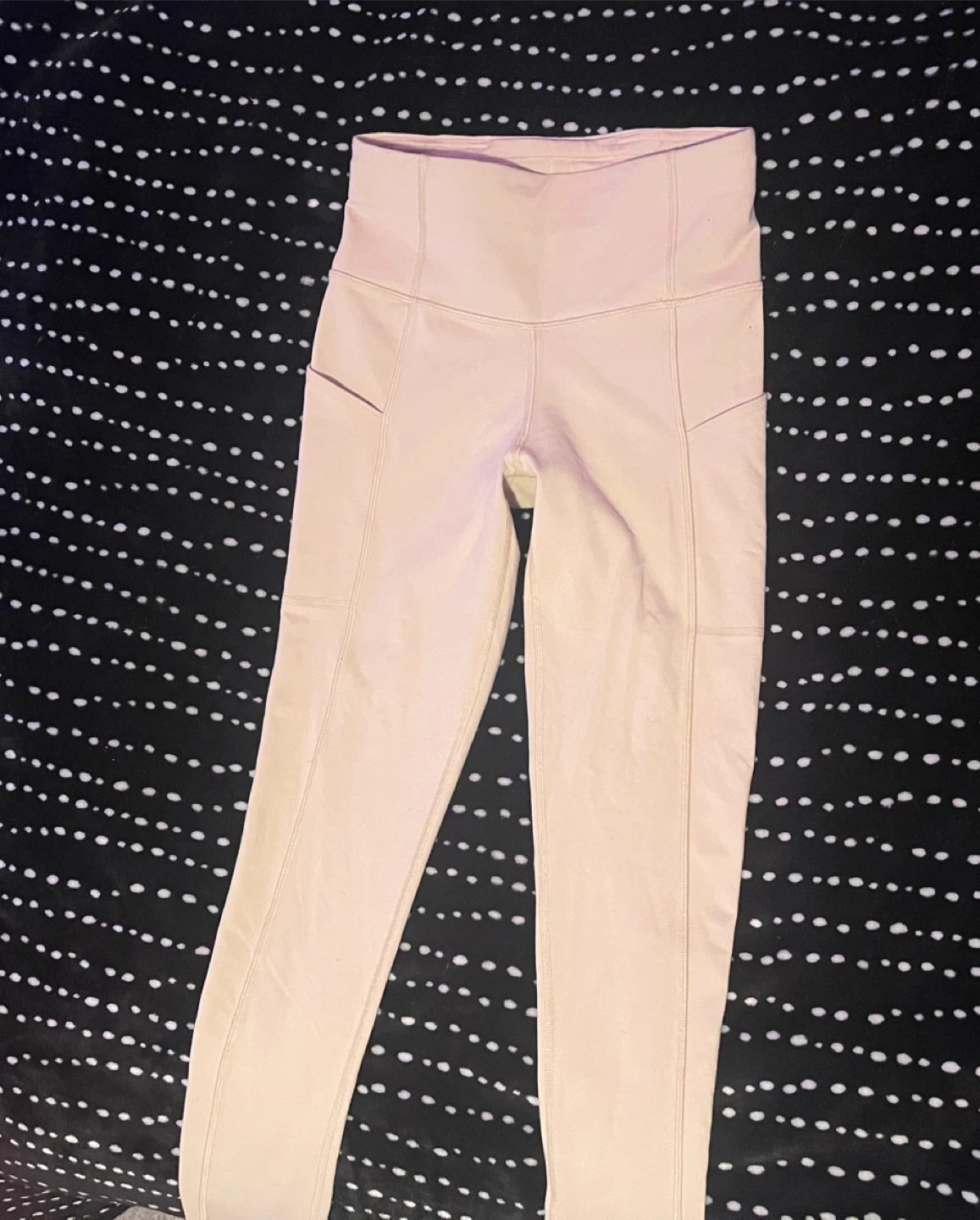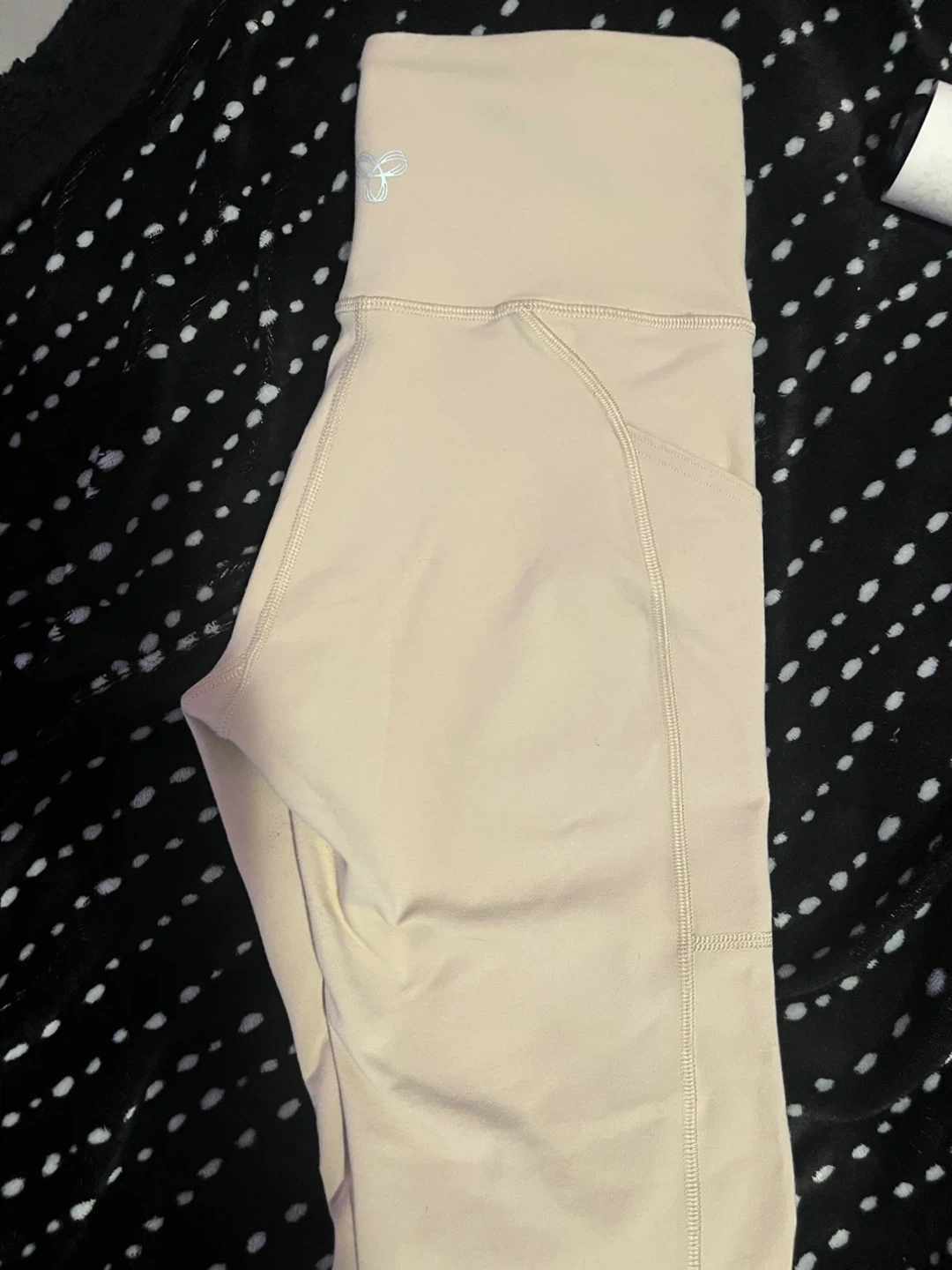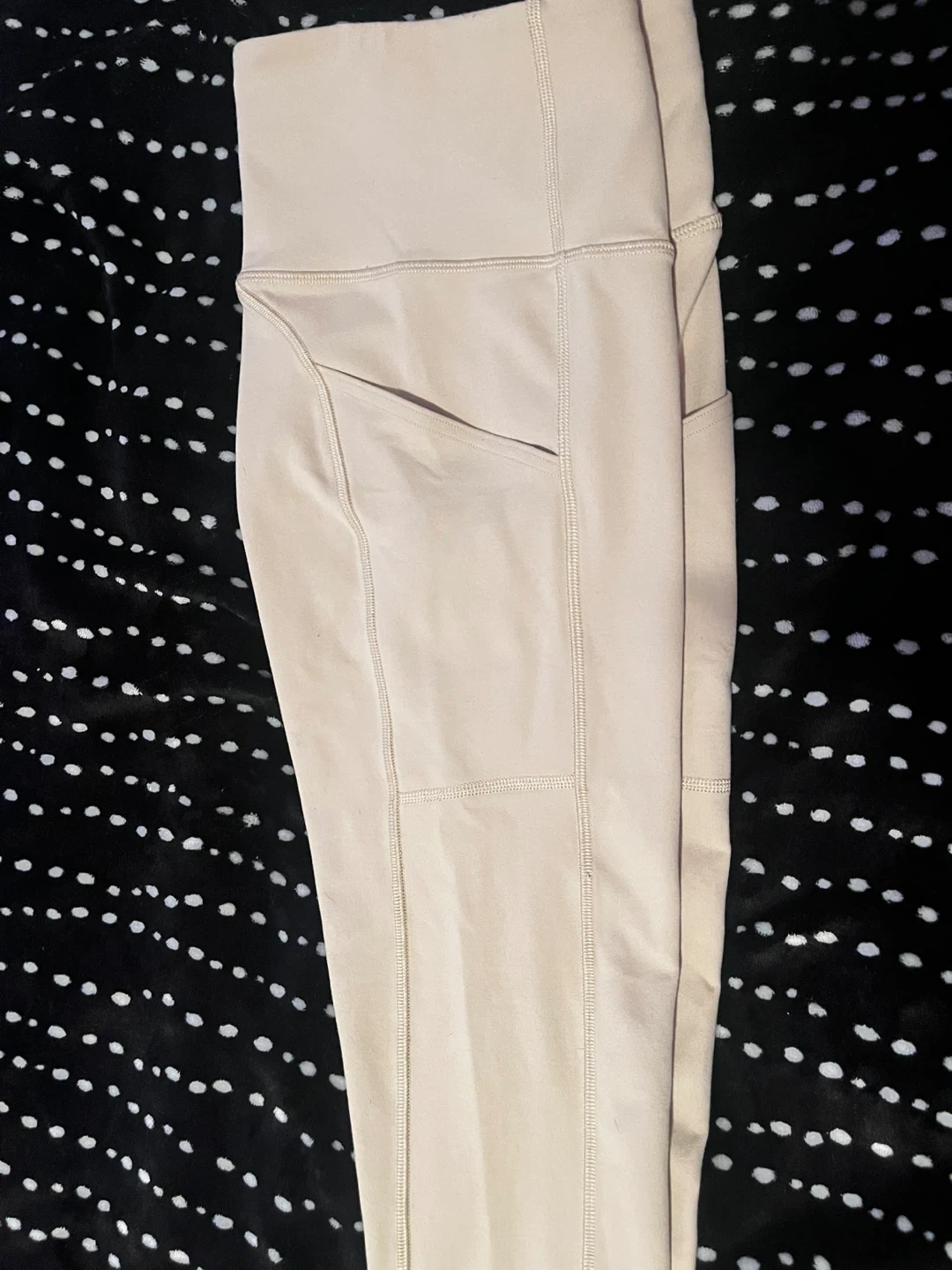 Size small, beige in colour, high waisted with side pockets. Never been worn outside, in like new condition.
