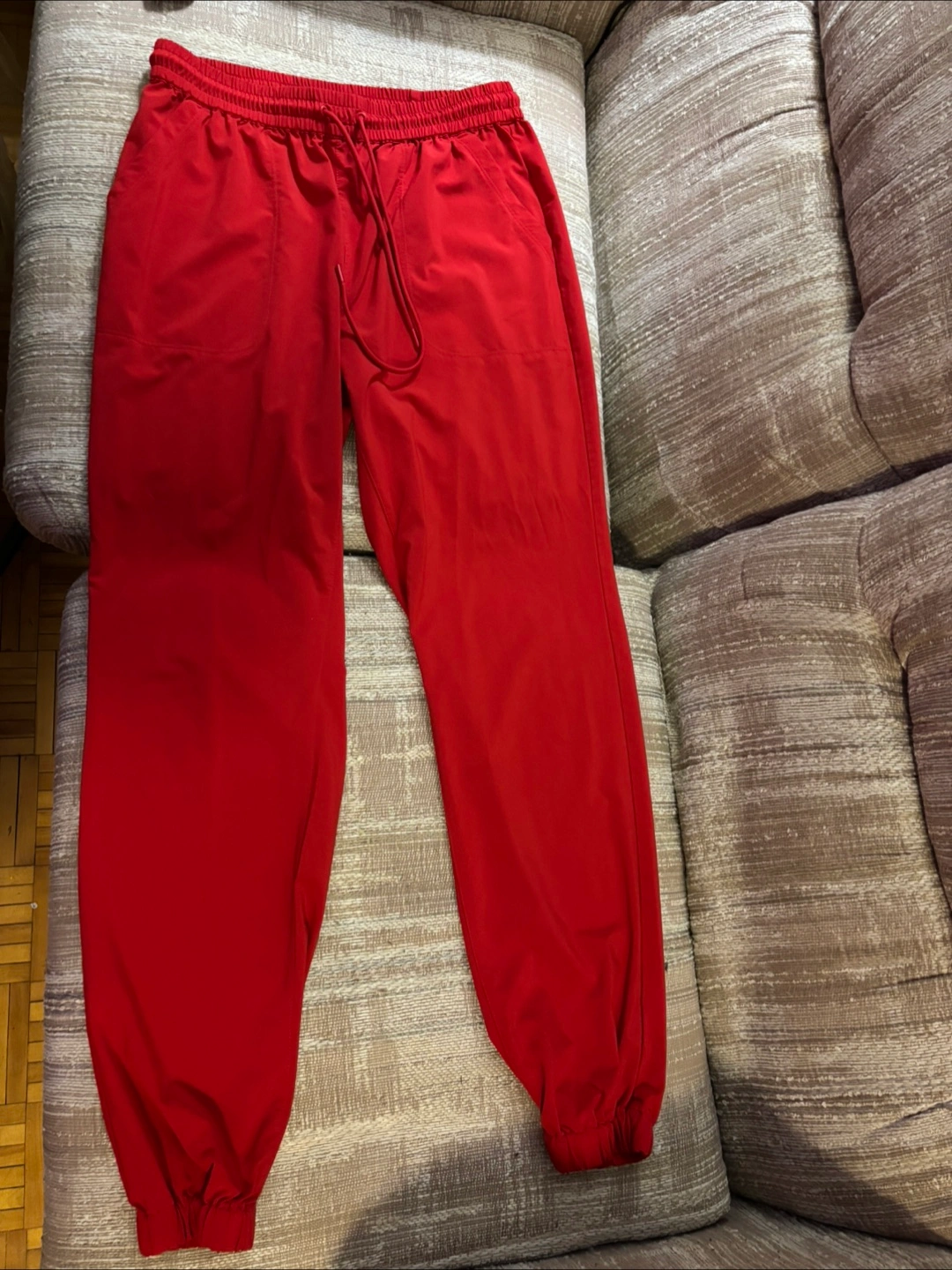 Selling a pair of TNA red joggers in size medium! Theyre super glowy and airy, good for this August heat. Never worn