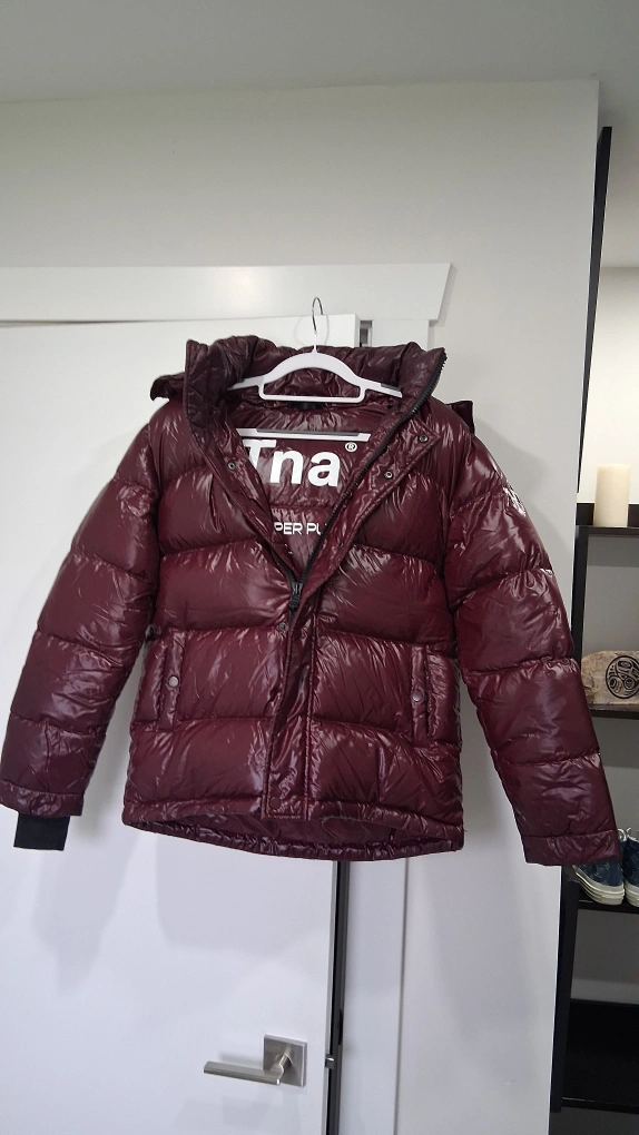 Selling a TNA Super Puff jacket in a lovely burgundy colour! It's in great condition and ready to keep you warm this winter