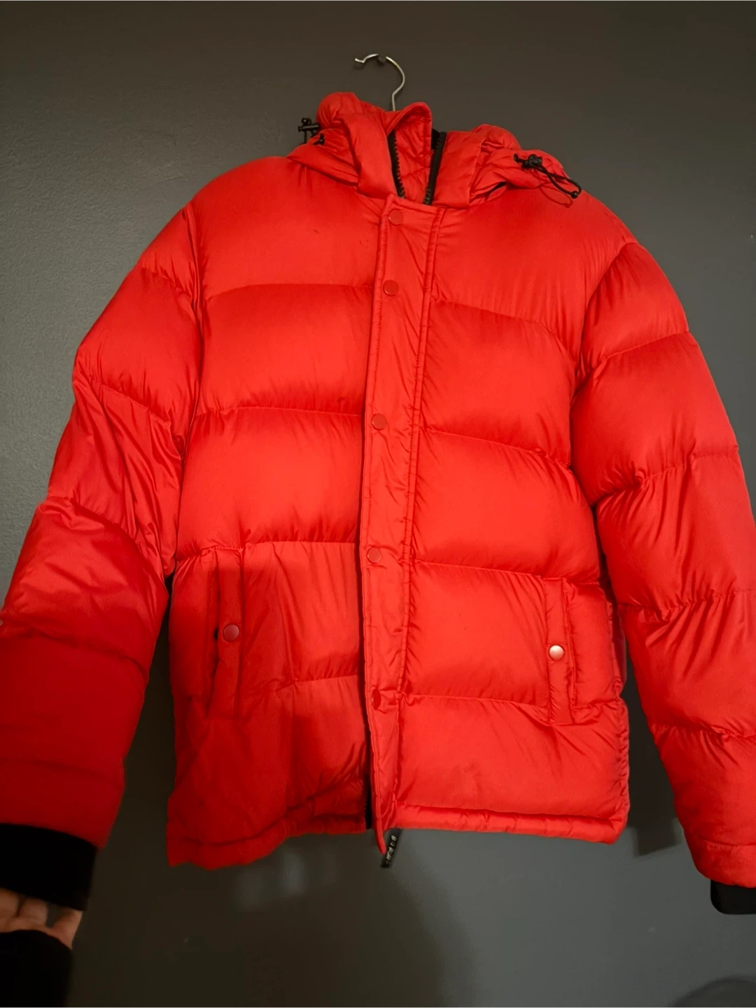 Stay warm this winter with a TNA Super Puff Long puffer coat! This stylish black coat is perfect for Canadian winters. It's in great condition and ready for a new home! Red 120 Black 50 Jeans 20