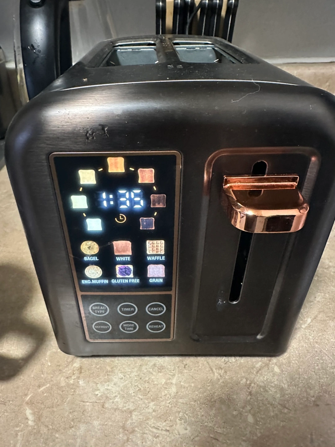 Two slice toaster. Digital controls. Various toasting options. Stainless steel finish. Rose gold accents. $50 4 ikea drawer dresser $100 IKEA lamp for $20