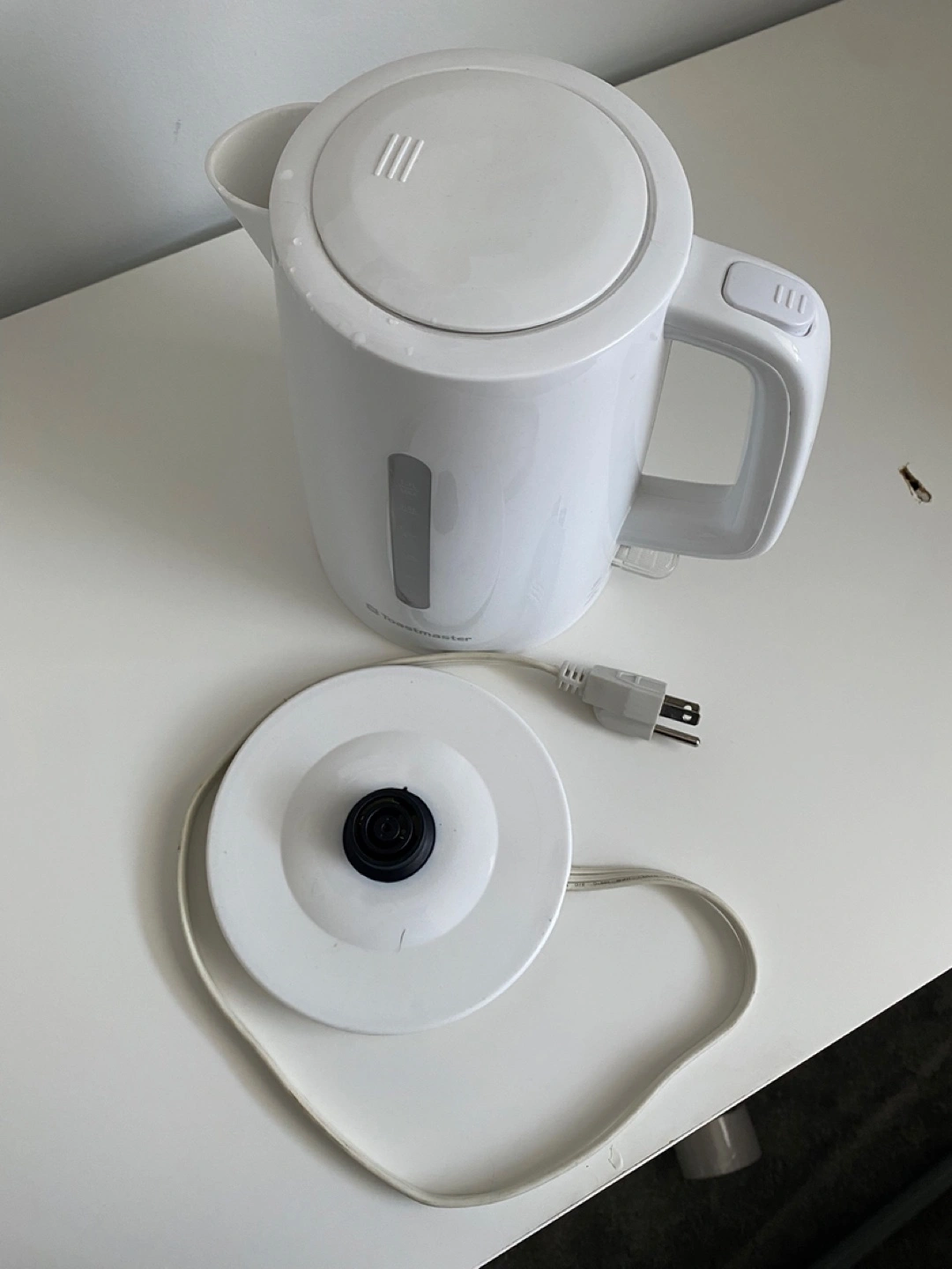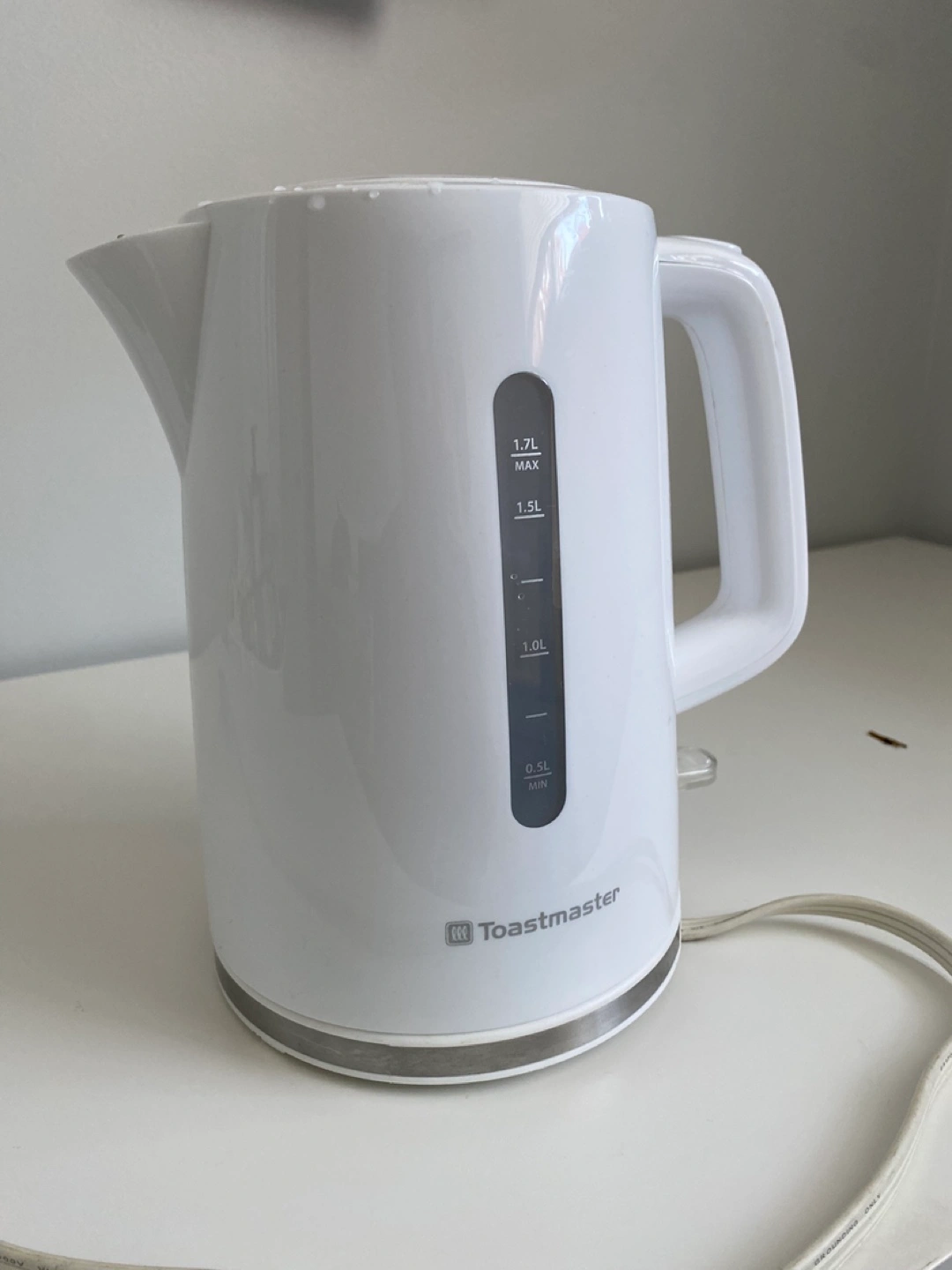 Selling a Toastmaster electric kettle in great condition. It's white and has a 1.7L capacity. Perfect for quickly boiling water for tea, coffee, or anything else you need hot water for!
