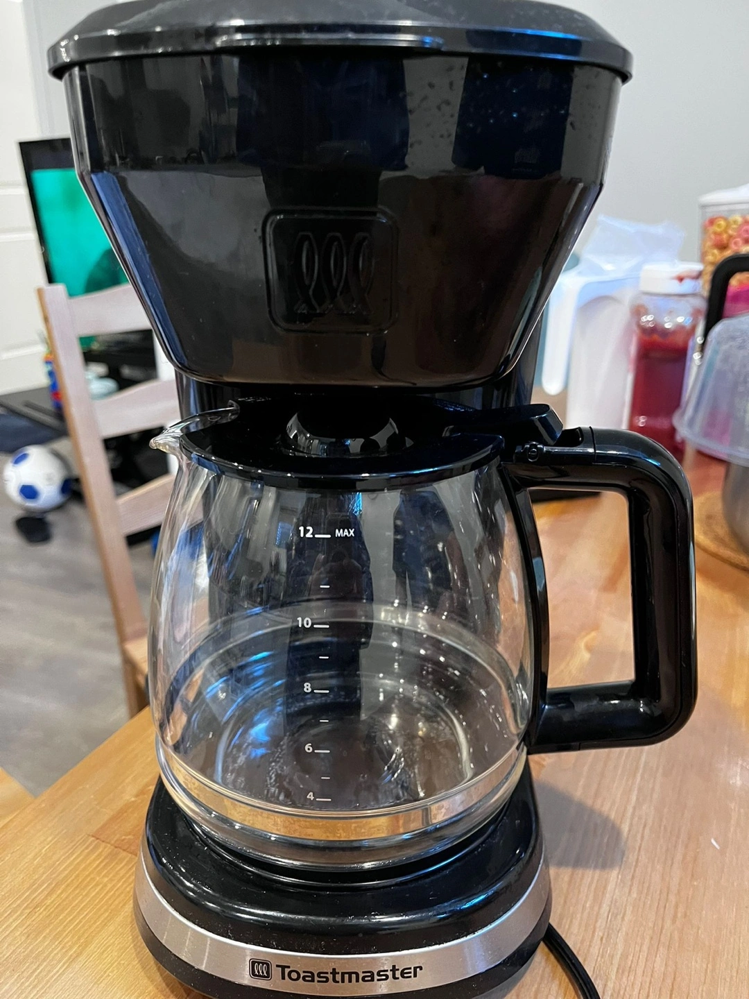 Selling a Toastmaster coffee maker that can brew up to 12 cups! It's in great shape and ready to make your mornings easier. The carafe is clear, so you can easily see how much coffee is left. Perfect for a small household or office