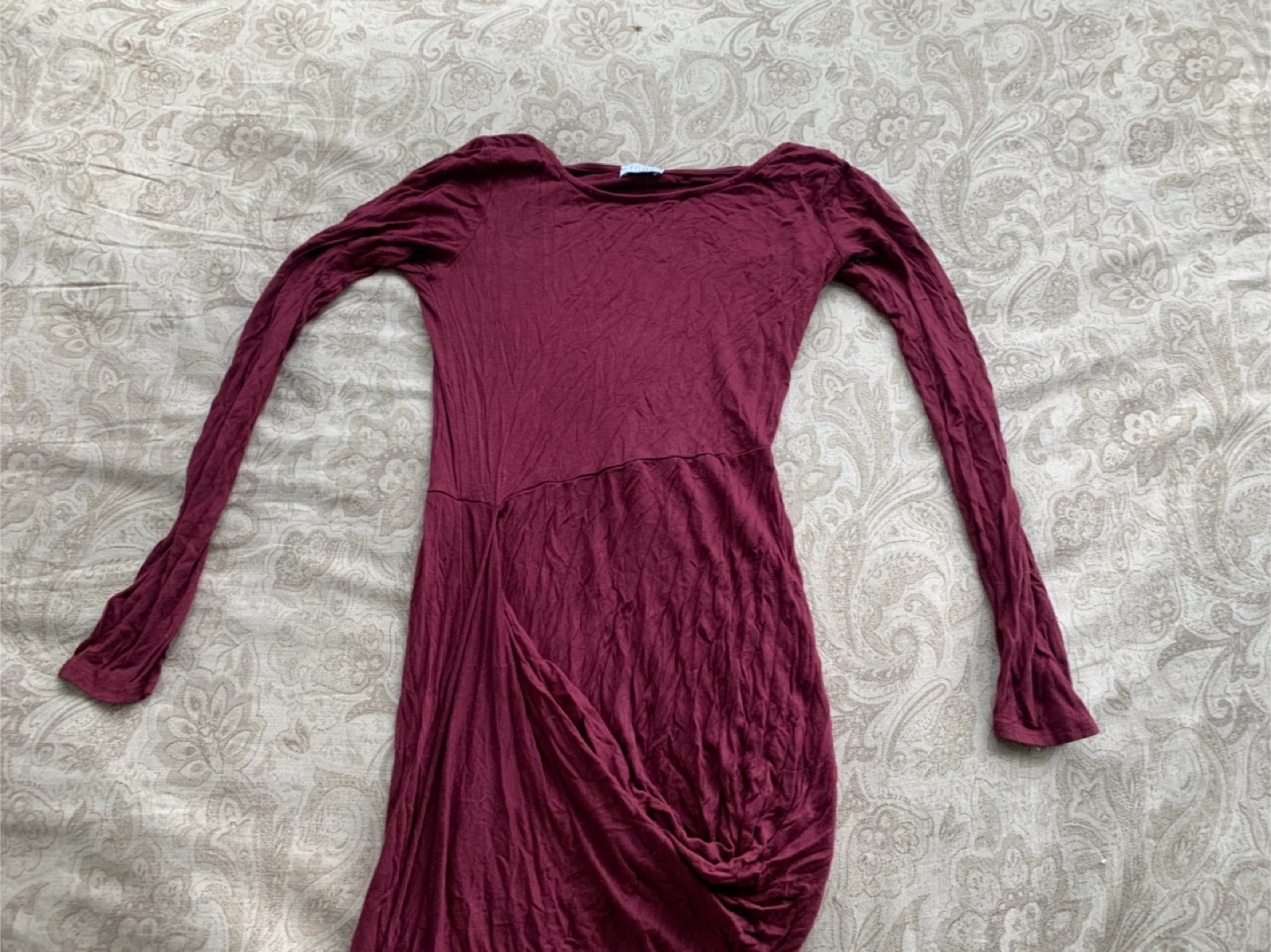 A lovely burgundy dress from TOBI! It's in great condition and ready for a new home. The unique design adds a touch of elegance to any occasion
