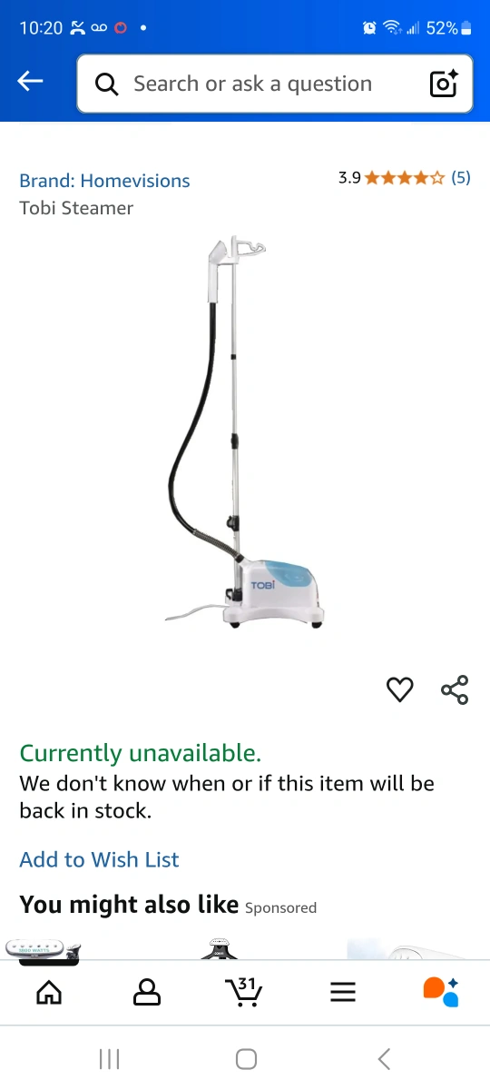 Selling a Tobi floor stand fabric steamer. It's in good condition and ready to help you get those wrinkles out! Great for refreshing clothes and fabrics around the house