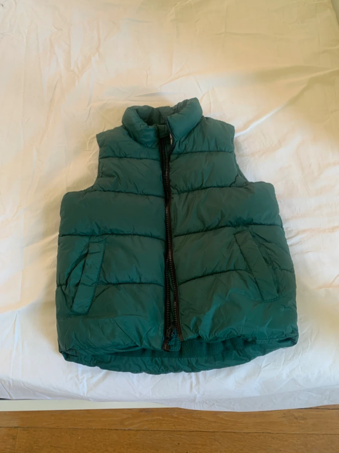 A cozy green puffer vest. Size is 5. Perfect for layering on chilly days