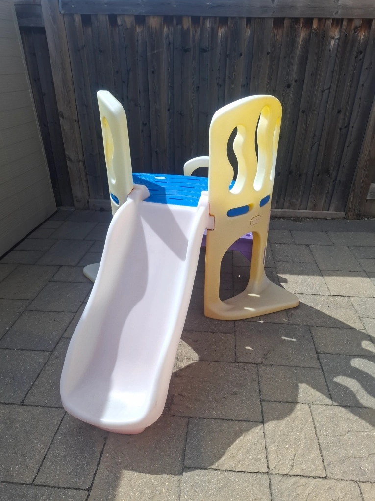 Plastic slide for young children. Features a neutral colour palette. Includes a climbing structure. Perfect for a child's outdoor play area, bringing hours of fun.