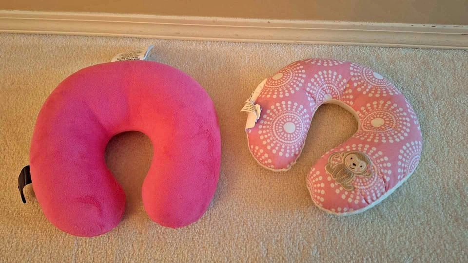 Toddler neck support pillows. Light pink one is for a young toddler (one year old) or older baby. $10 each. Sold as separate items. Pickup in Port Moody. Evenings and weekends only. Clean, no pets, non-smoking home.