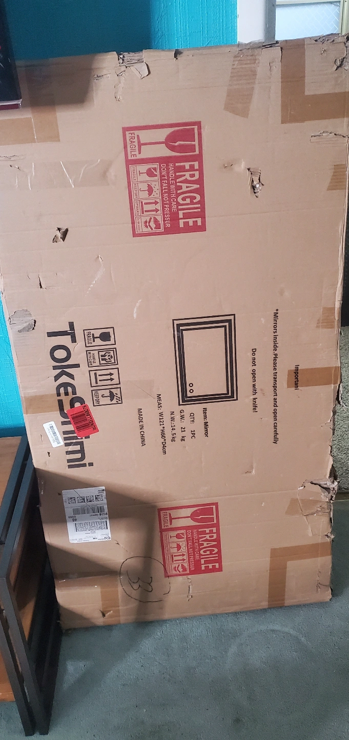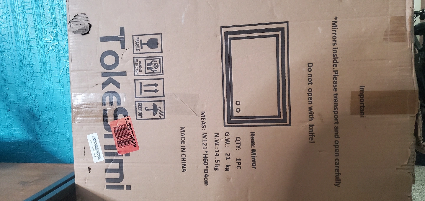 Brand new Tokesini mirror, still in original packaging. Large mirror, perfect for any room. Dimensions: W121 x H60 x D4cm. Weight: 5 kg. Handle with care; fragile.
