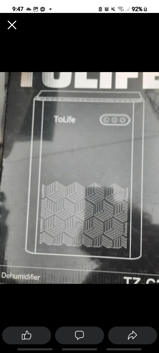 Selling a ToLife Dehumidifier, model TZ-C02! New ready to help keep your space dry and comfortable
