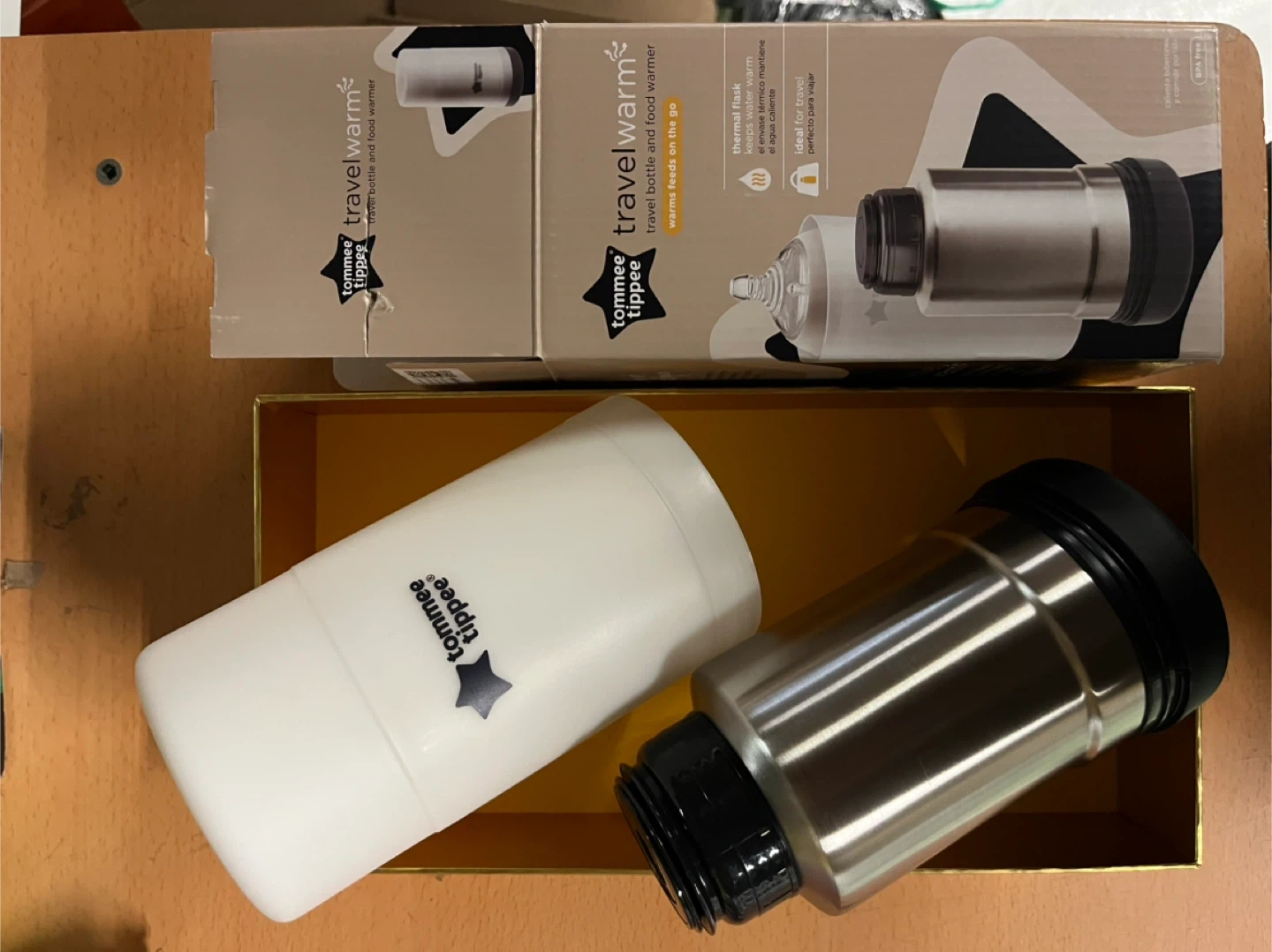 I'm selling a Tommee Tippee Travel Warm bottle, The thermal flask keeps water warm, and it's ideal for travel. It also comes with the box!