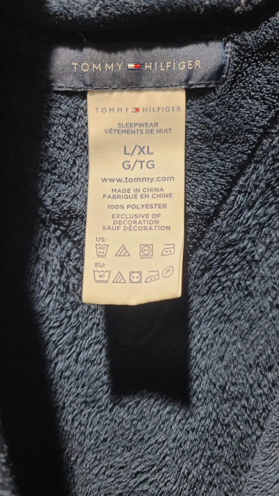 Cozy Tommy Hilfiger bath robe in size L/XL! It's in great condition and super comfy for lounging around the house. Made of 100% polyester