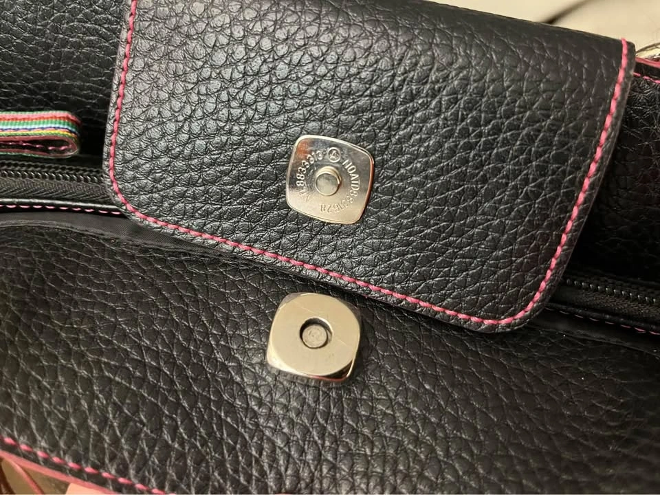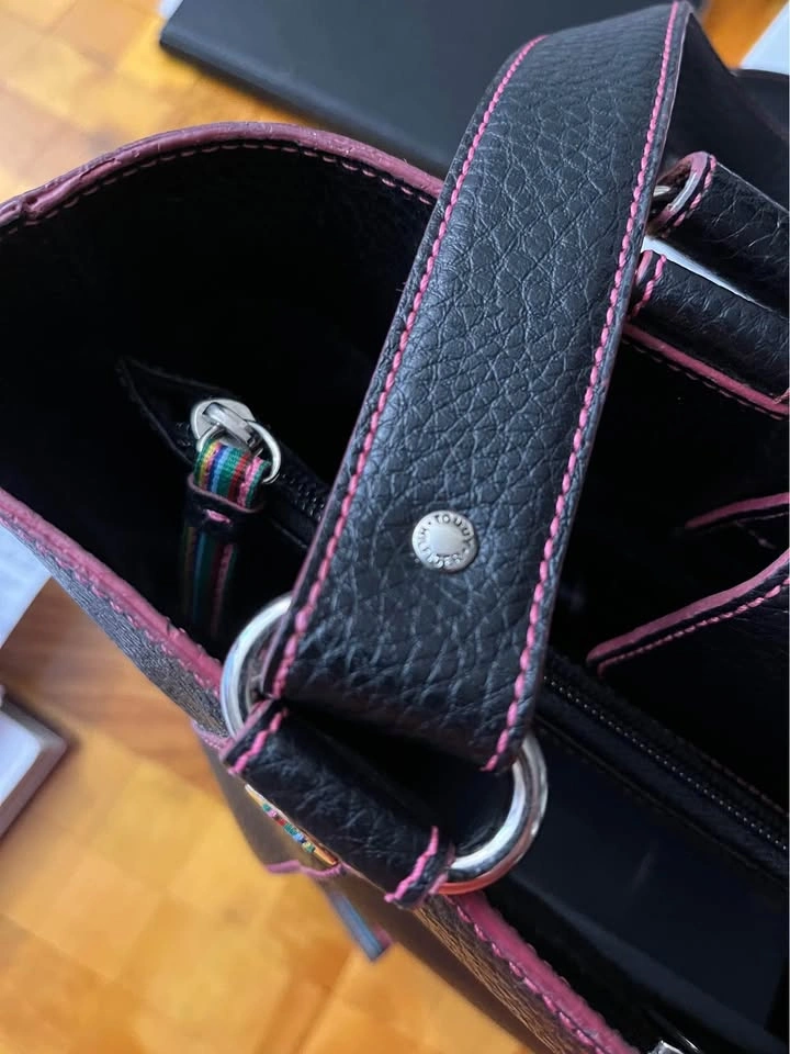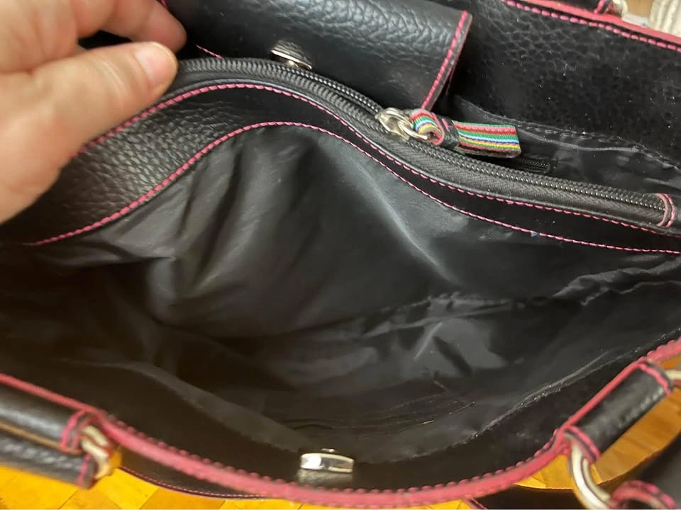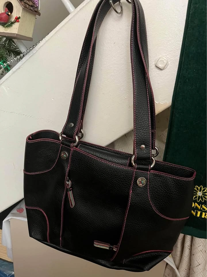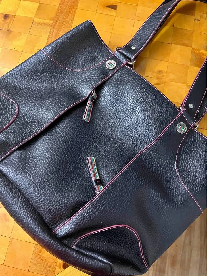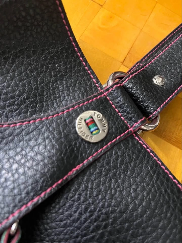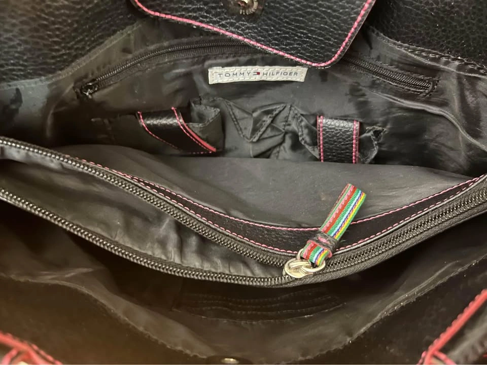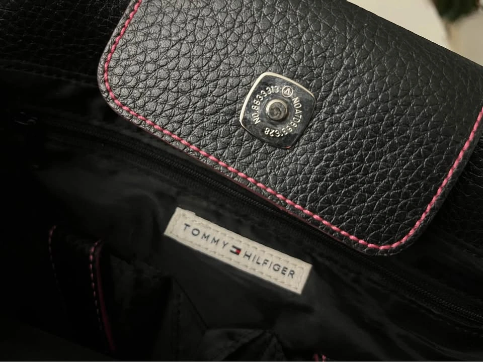 Vintage Tommy Hilfiger Women’s Black Pebble Grain Leather Handbag, like new as it was never used. Two outside zippered pockets that fit glasses, keys, etc. Two spacious separate lined compartments and one zippered compartment in the middle inside to organize and store all your necessities with magnet closure. 14.5 inches wide X 11 inches tall. Enjoy for $40.00! If it is listed, it is available. Pick up 10-minute drive East of downtown Ottawa.