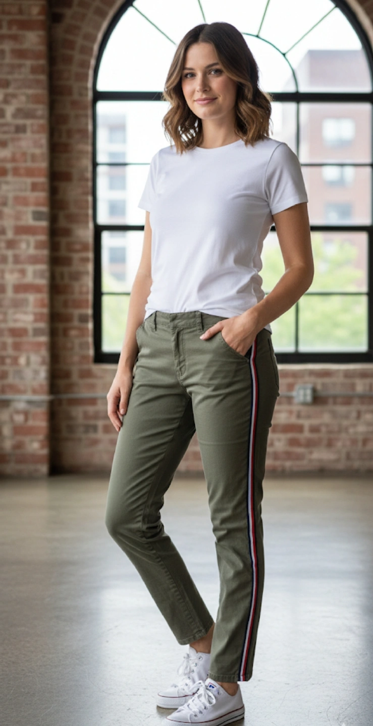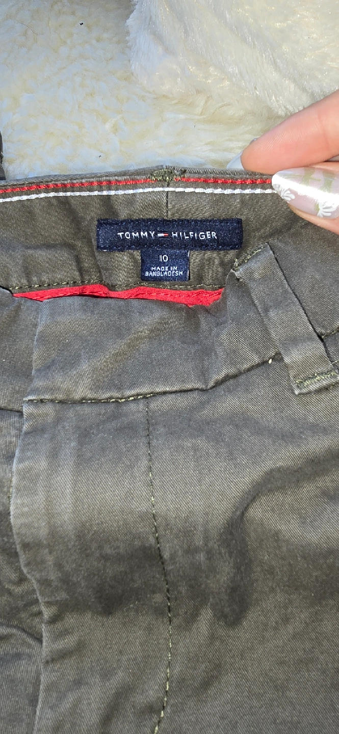 Tommy-Hilfiger size 10 olive green women's pants, made in Bangladesh.