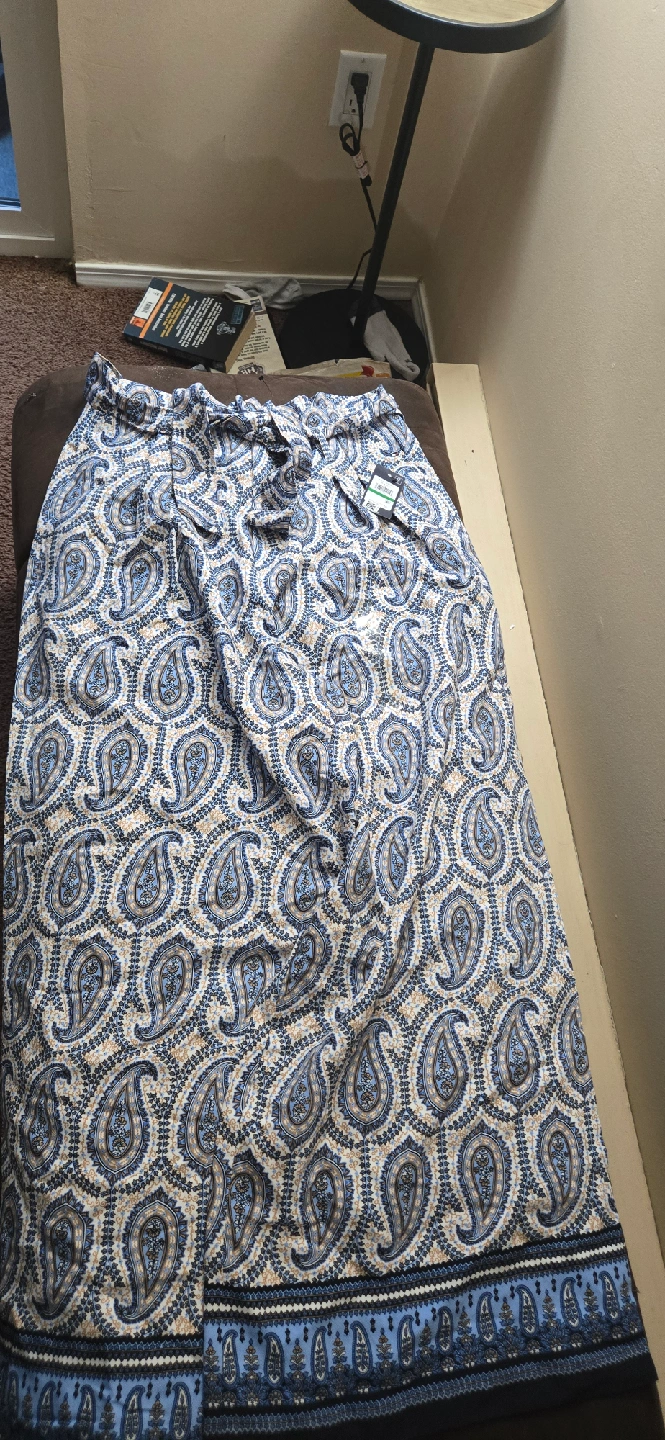 Flowy paisley print Pants in shades of blue and beige. Perfect for a casual day out or dressing up for an evening event! The Pants has a comfortable fit and a stylish design.