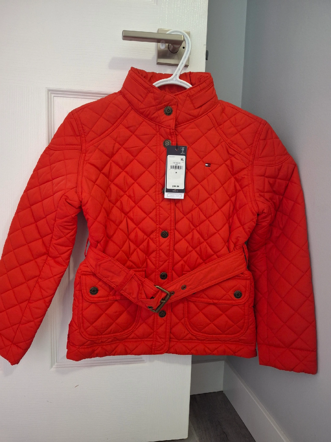 Tommy Hilfiger quilted jacket. It's in excellent condition and features a stylish design. Perfect for staying warm and fashionable during cooler weather!