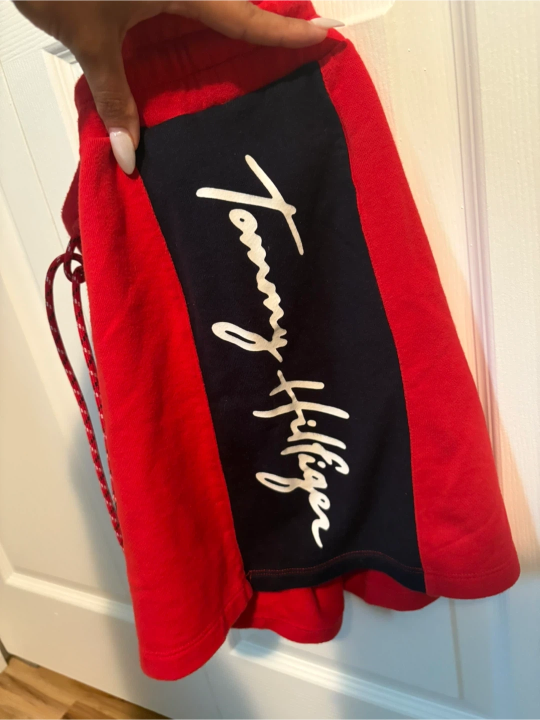 Selling a Tommy Hilfiger skirt in red and navy! It's in great condition and features the Tommy Hilfiger logo along the side. Perfect for a casual, sporty look