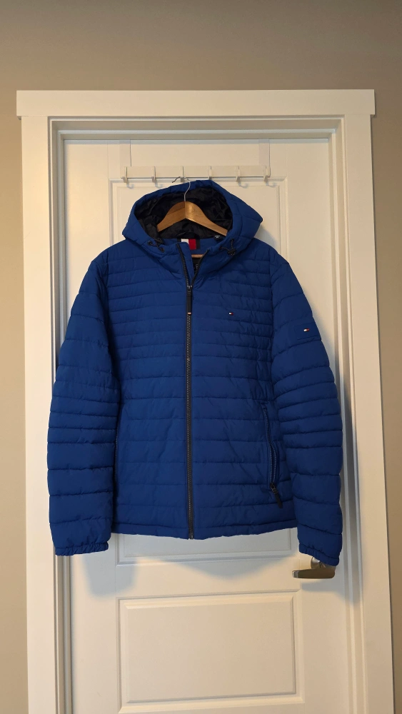 Here's a Tommy Hilfiger TH Flex puffer jacket in size XL! It's a vibrant blue colour and in great condition. The tag shows it originally retailed for $225. A great jacket for the cooler weather!