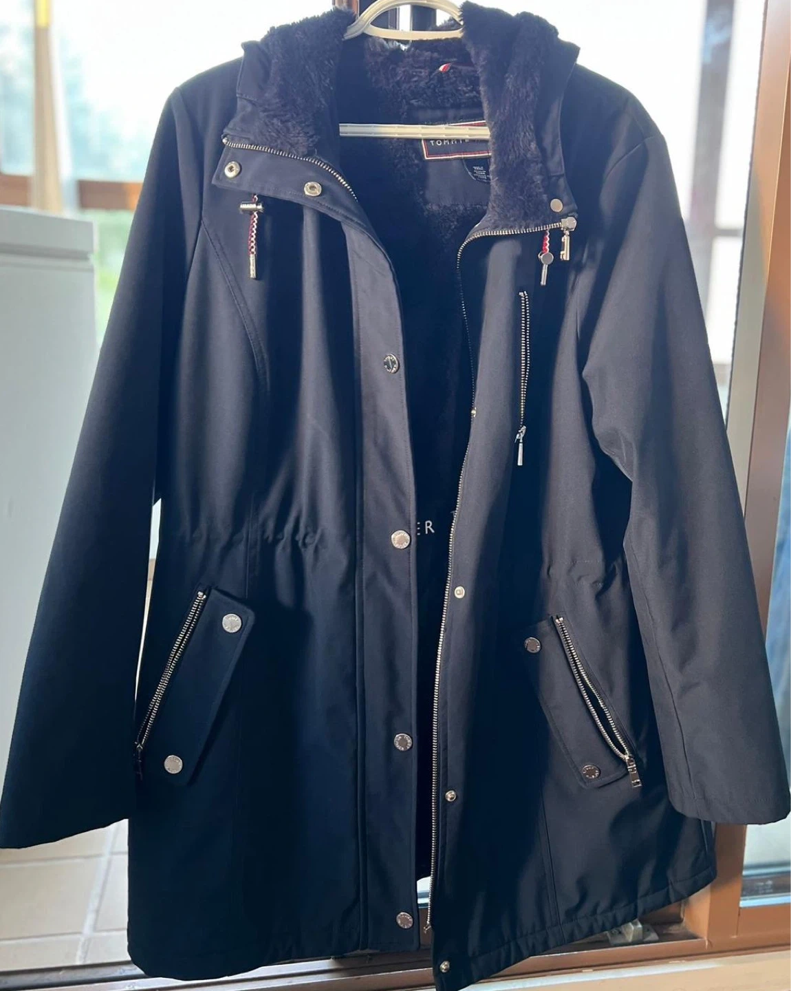 Stay warm this winter with this Tommy Hilfiger coat! It's a size XL and features a cozy faux fur lining. Perfect for those chilly Canadian days!