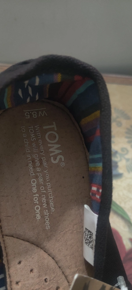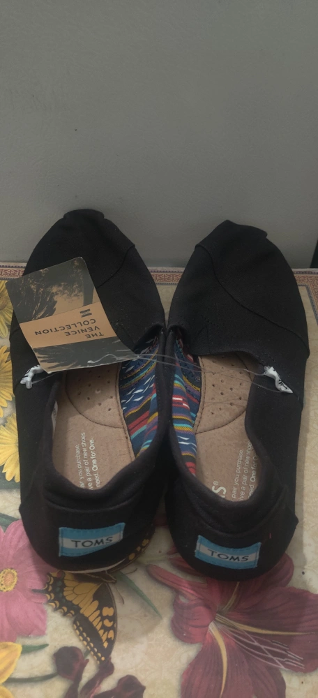 Selling a pair of black TOMS slip-on shoes in women's size 8.5. They're brand new. The shoes feature the classic TOMS design with a comfortable fit. Perfect for casual wear and everyday use. Price is firm. Please dont contact me if you are not willing to pay asking price