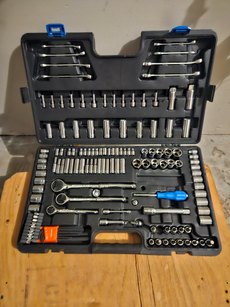 Selling a complete tool set, perfect for any DIY enthusiast or professional! This set comes neatly organized in a durable case, making it easy to transport and store. Includes a variety of wrenches, sockets, ratchets, and other essential tools to tackle any project. A great addition to your garage or workshop!