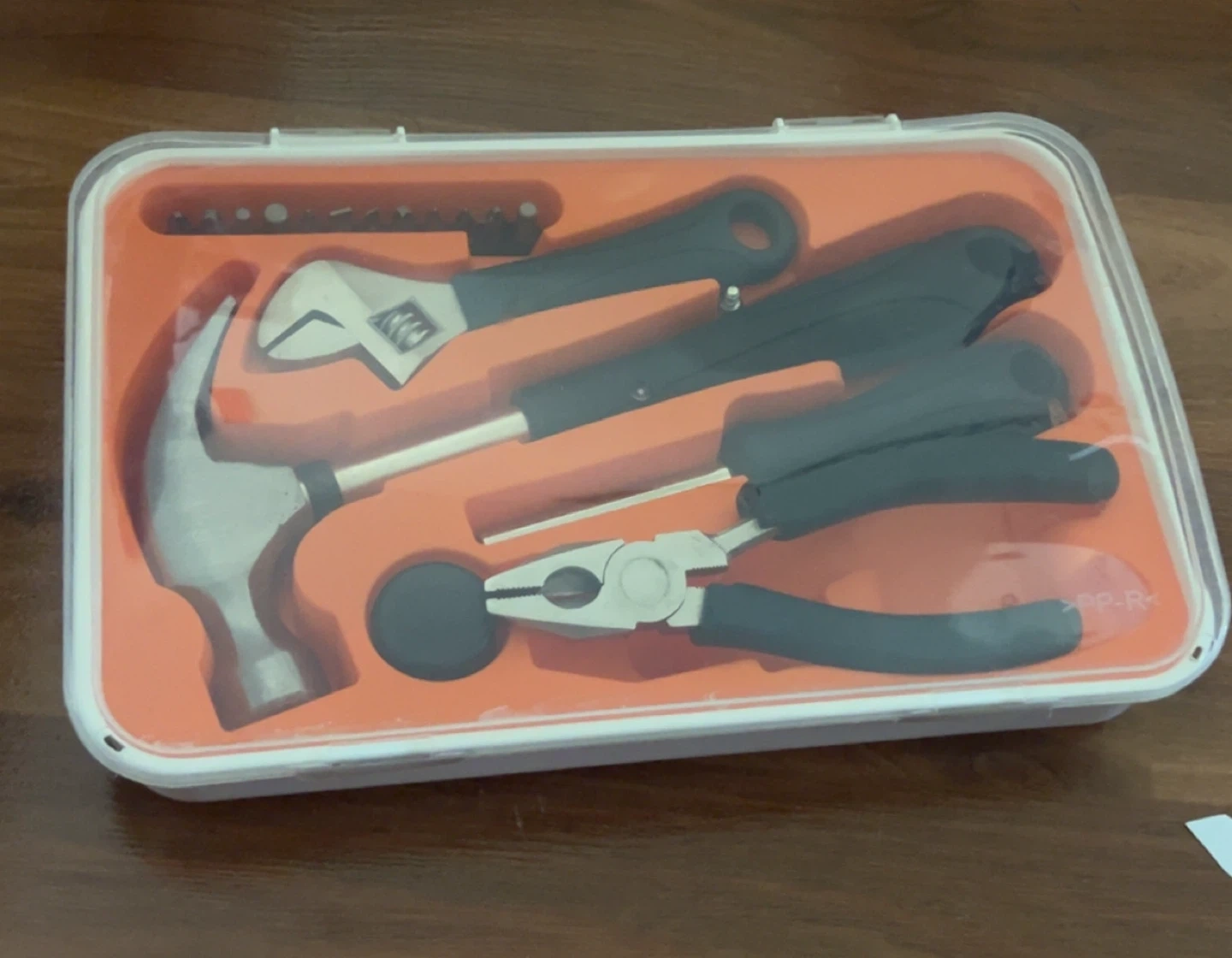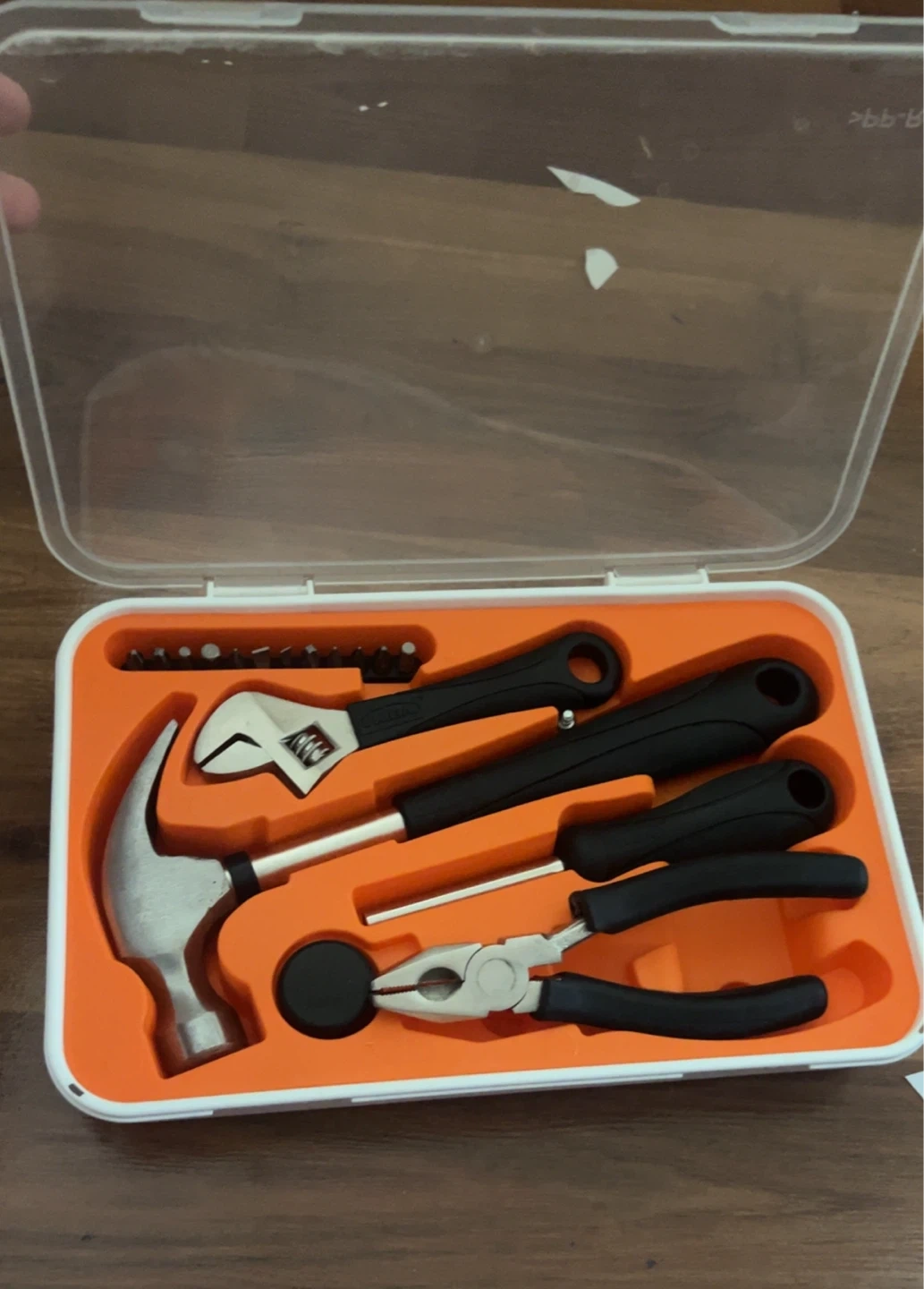 Selling a handy tool set that comes in its own case! It includes a hammer, wrench, pliers, and a few screwdriver bits.