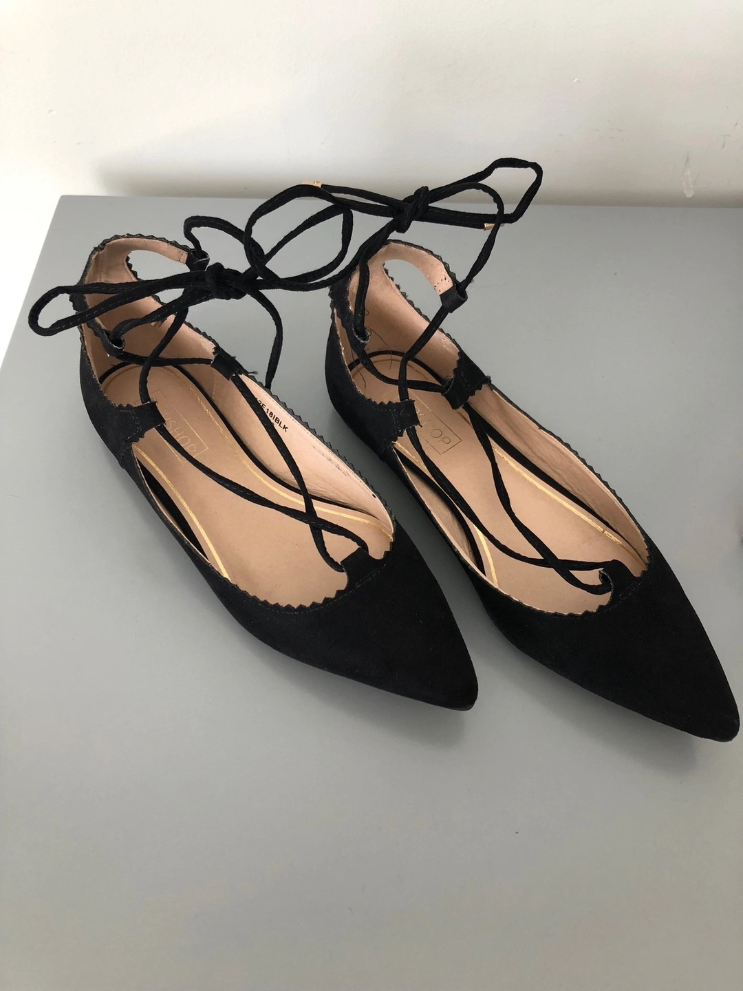 Size 5.5US Suede tie-up flats Worn twice ⭐️Major intersection for pick up is Avenue Road and Eglinton⭐️
