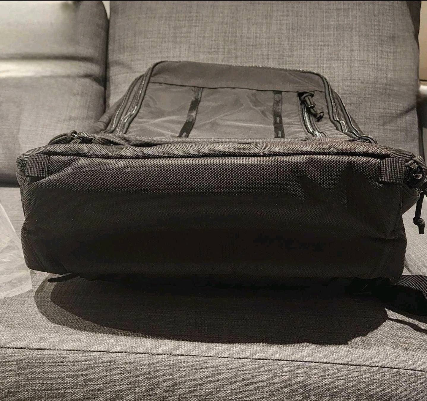 Colour: Black ALMOST NEW, only used once Smoke free and pet free Features and specs: Built with recycled nylons Carry-on compliant 3-way carry (backpack straps, shoulder strap and grab handles) Foam structure with padded recycled ballistic nylon back panel U-shape entry to large main compartment Internal mesh organization pockets U-shape entry to secondary organization compartment Larger zippered security pocket and dual slip pockets Vertical exterior zippered pocket with dual security pockets Easy access to back panel laptop compartment, fits most 15” laptops Stowable contoured padded spacer mesh shoulder straps Load-lifter straps and sternum strap Removable waist belt Removable adjustable padded shoulder strap Expandable side water bottle pockets Vertical daisy chain webbing Heavy-duty YKK zippers with security loop on main compartment PackFast™ Attachment Clips Signature high visibility recycled yellow pack cloth interior, recycled black pack cloth interior on black color only Meets most airline carry-on requirements Materials: 1000D recycled nylon, 400D recycled nylon, 210D recycled nylon, 1680D recycled ballistic nylon Dimensions: 14"w x 22.5"h x 7.5"d Volume: 2441 cu. in. / 40 L (*can expand to 45 L when fully packed) Weight: 58.4oz