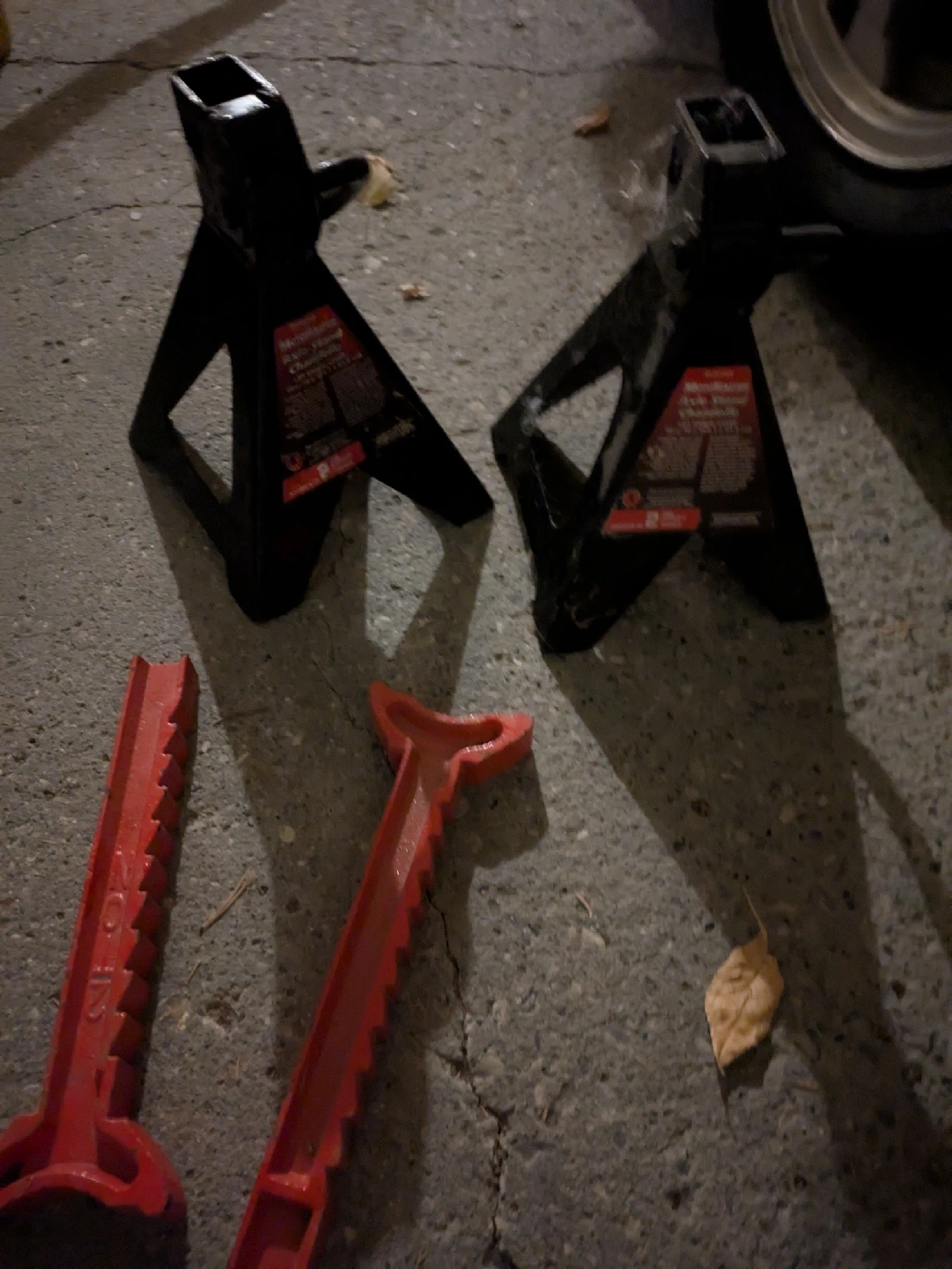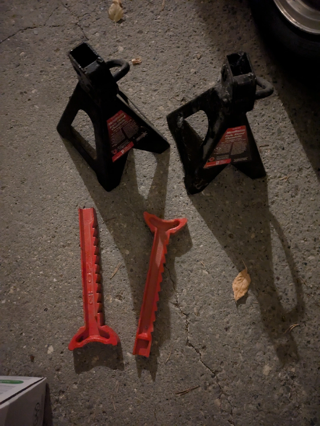Selling a pair of Torin jack stands, complete with their safety pins. They're in used condition but still have plenty of life left for your auto projects
