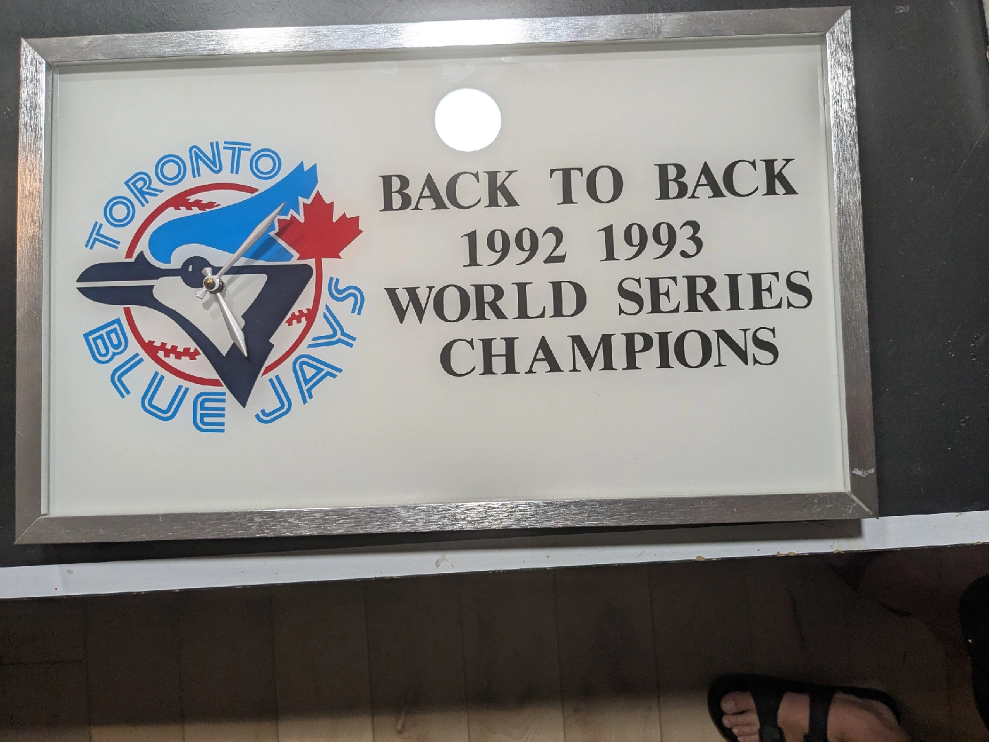 Selling a Toronto Blue Jays clock commemorating their back-to-back World Series championships in 1992 and 1993! It's a great piece for any Jays fan's collection or to add some team spirit to your space