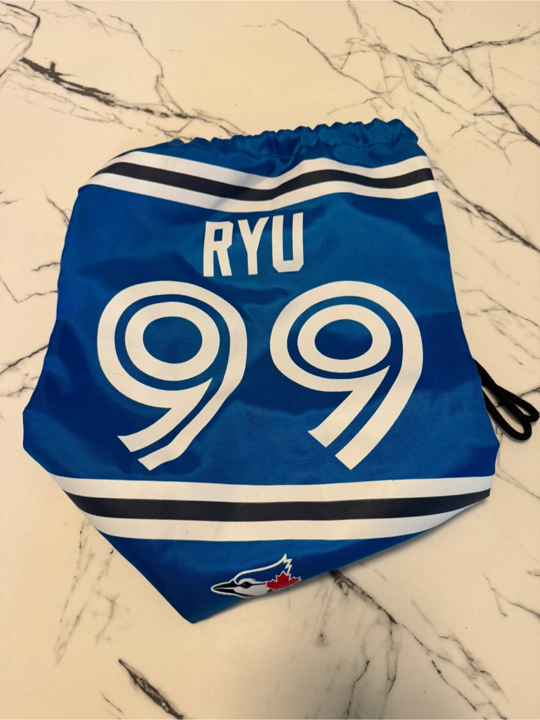Selling a Toronto Blue Jays drawstring bag with Ryu #99 on it. It's in great condition and perfect for carrying your essentials to the game or gym! The bag is blue with white accents.