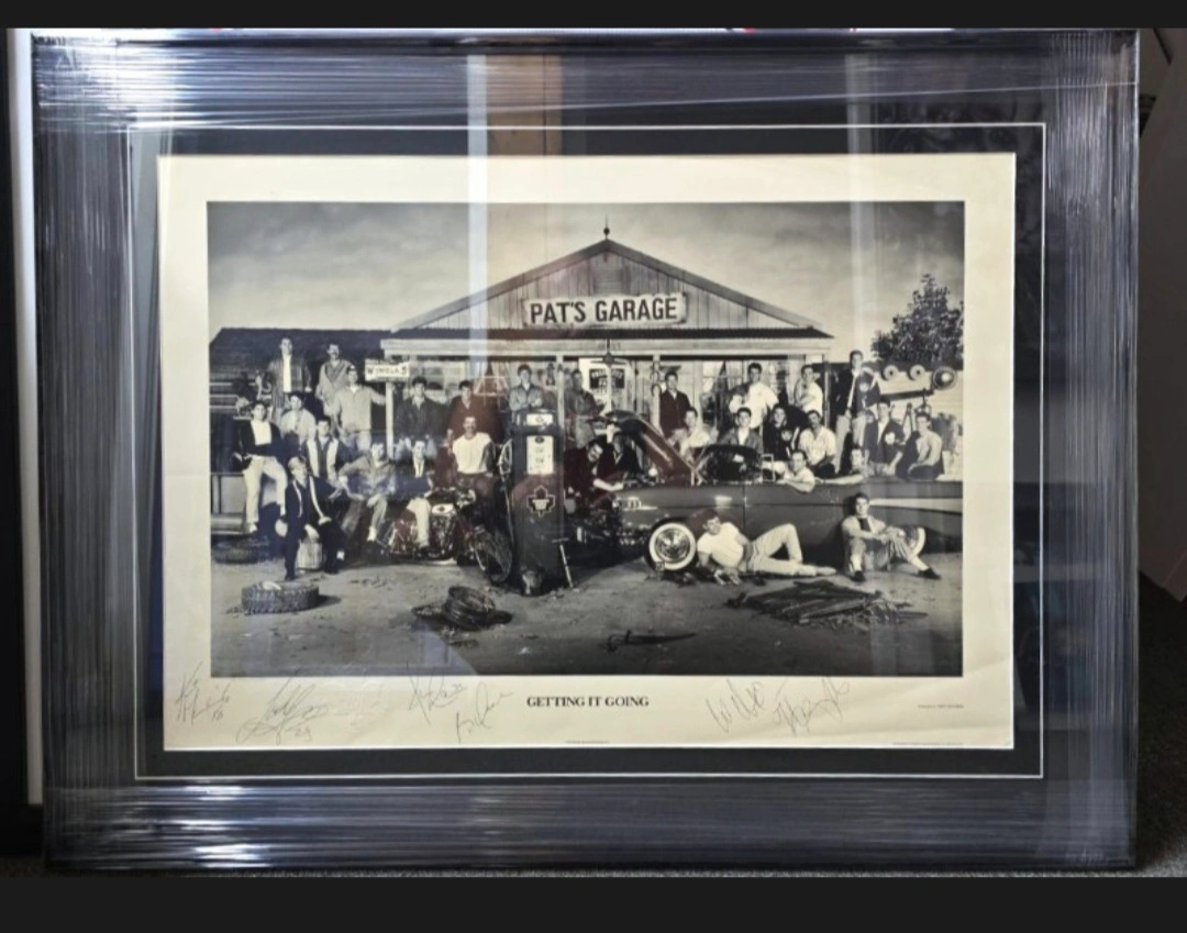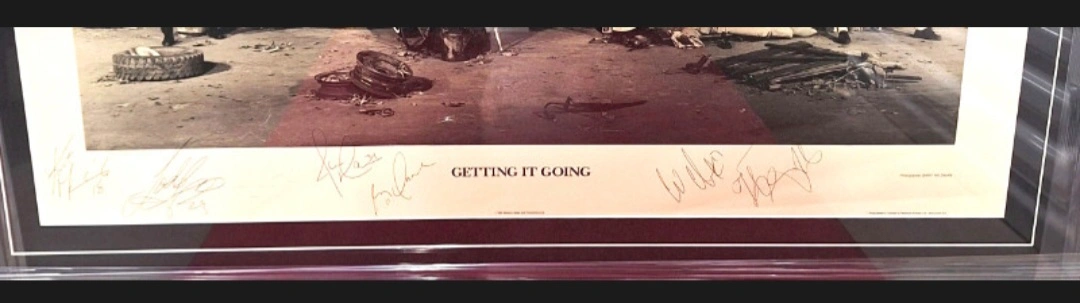 Toronto Maple Leafs PAT's GARAGE Quintology Framed L/E Print "GETTING IT GOING" AUTHENTIC SIGNATURES by WENDEL CLARK, TODD GILL, NIKOLAI BORSCHEVSKY, JAMIE MACOUN, GUY LAROSE and KENT MANDERVILLE signed in 1992 JUST FRAMED With a BLACK Lacquer FRAME, ARCHIVAL MAT with V-GROOVE. READY TO GO !! The plastic wrap is to protect the lacquer frame from damage. Signed at the HOCKEY NIGHT IN CANADA CBC STUDIO while I was there Working. ******GUARANTEED 100% AUTHENTIC SIGNATURES !!!!****** GREAT GIFT for ANY LEAFS FAN !!!