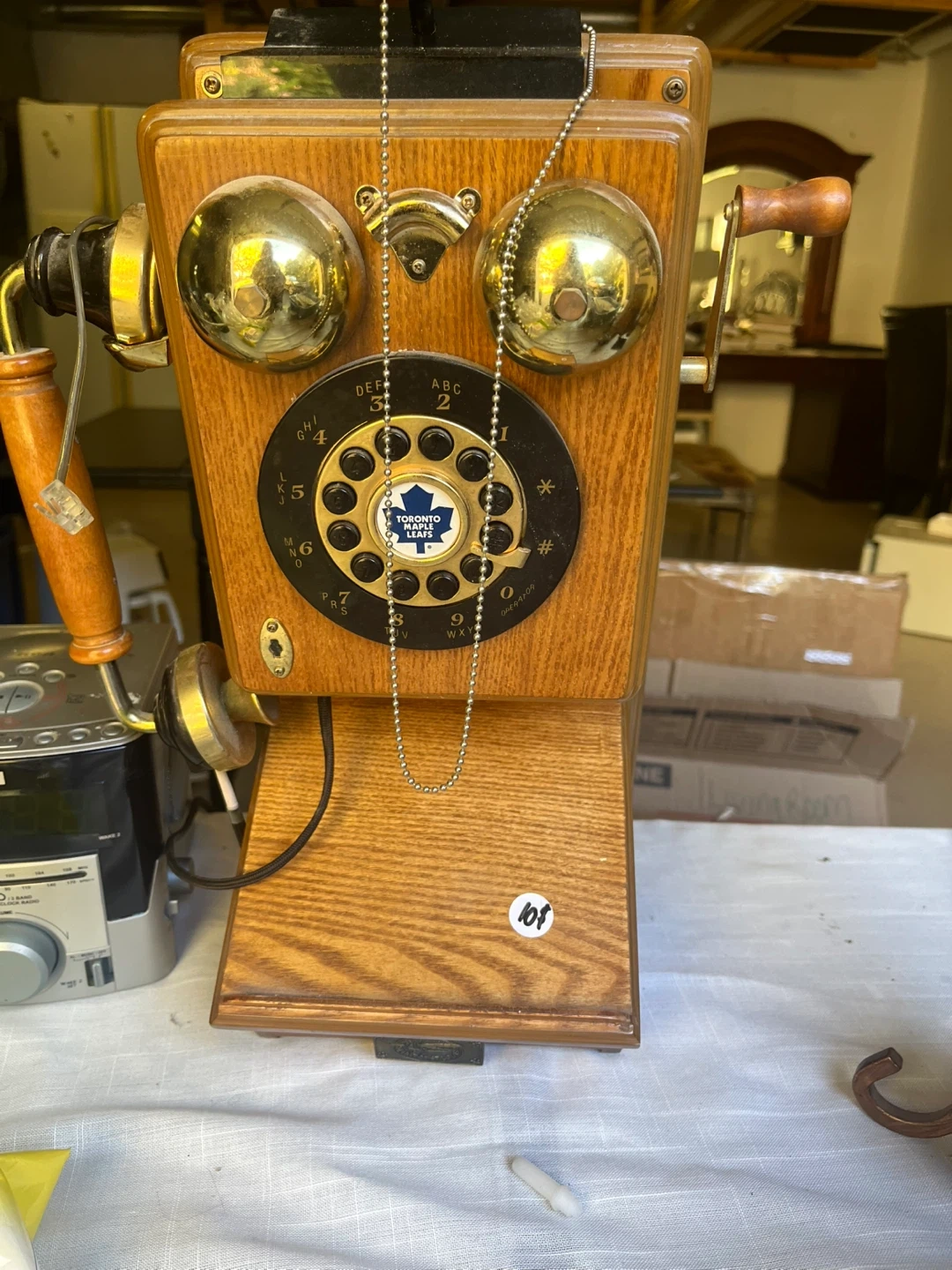 Selling a unique Toronto Maple Leafs rotary phone! It's a fun piece for any Leafs fan or vintage phone collector. The phone has a classic rotary dial with the Toronto Maple Leafs logo in the center. It's in good condition and ready to be displayed or used. It does connect a land line.
