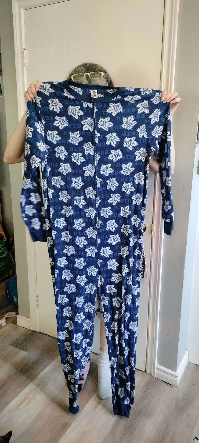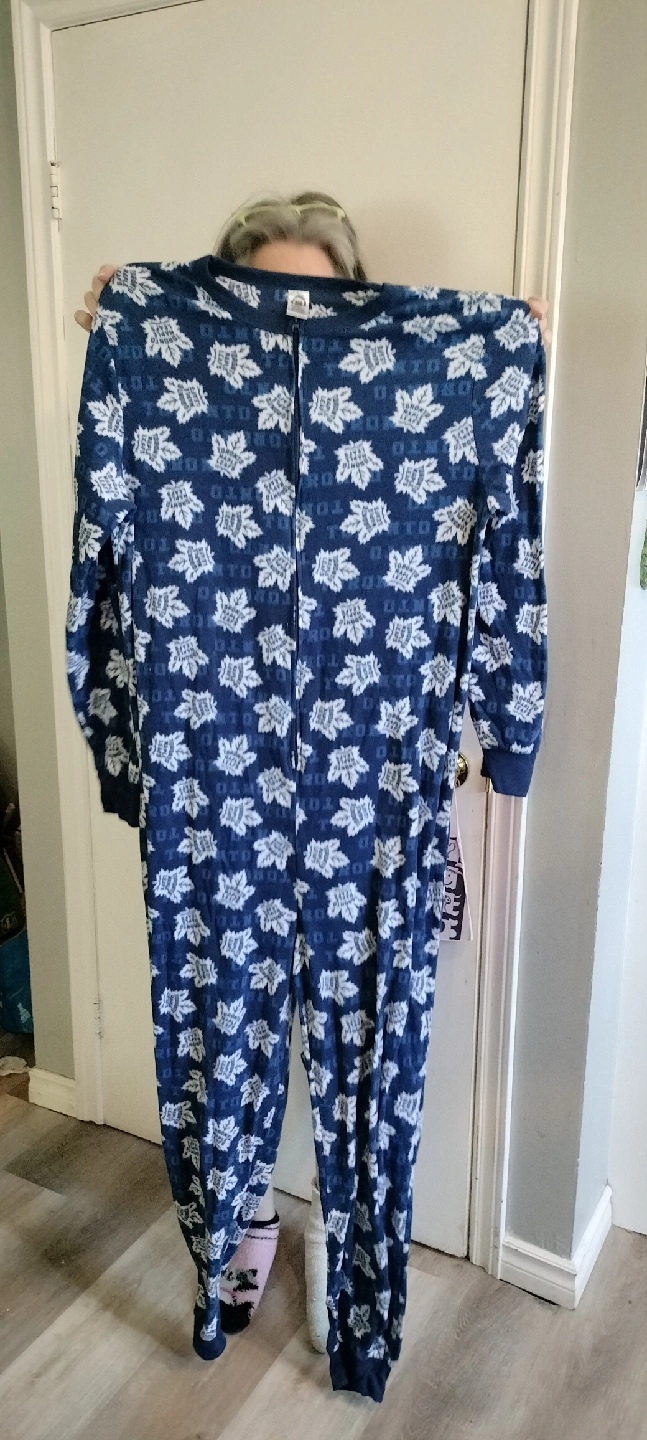 The adult onesie fits large in length but more like a medium width wise. Selling as lot for only $30.