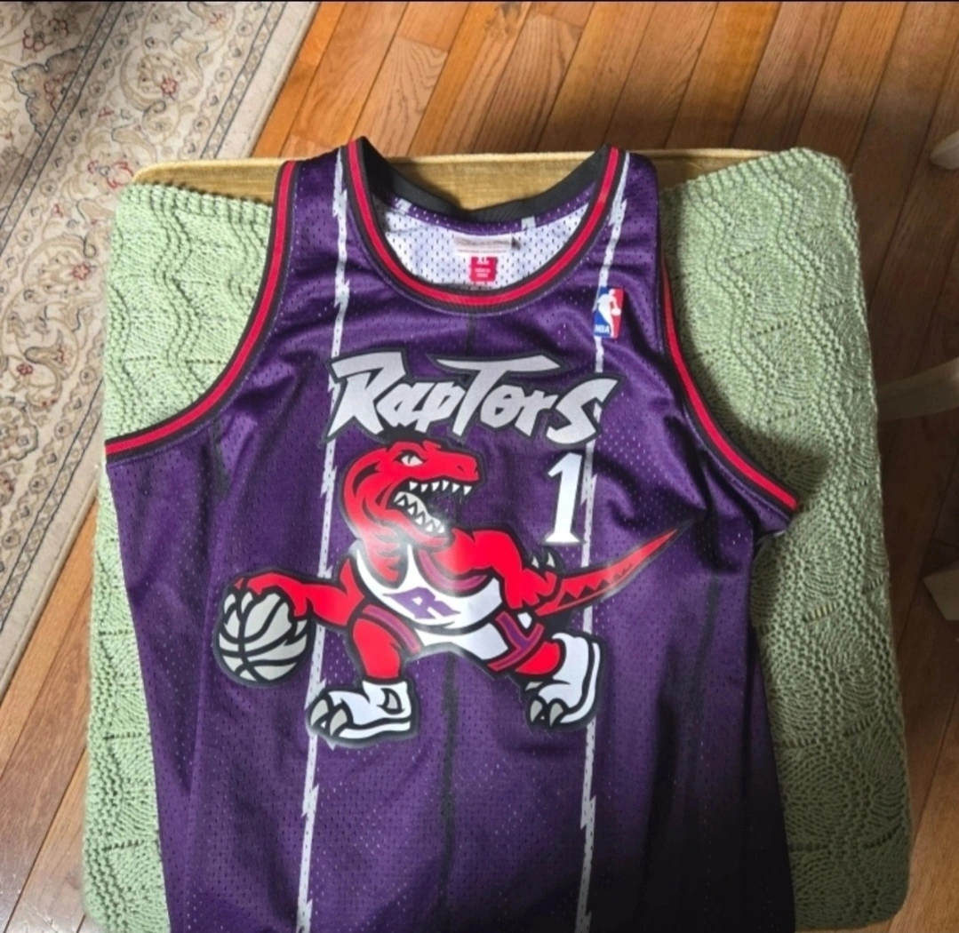 Selling a Toronto Raptors jersey with McGrady's name and number 1 on the back. XL. Barely worn. $45 or best offer. Mitchell and Ness.