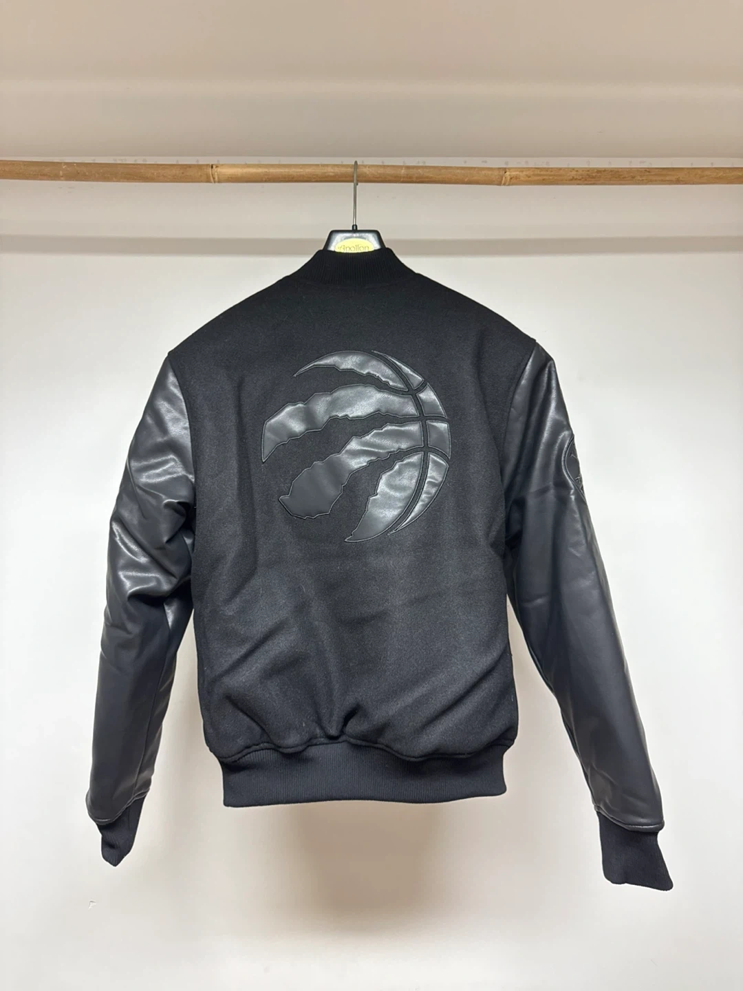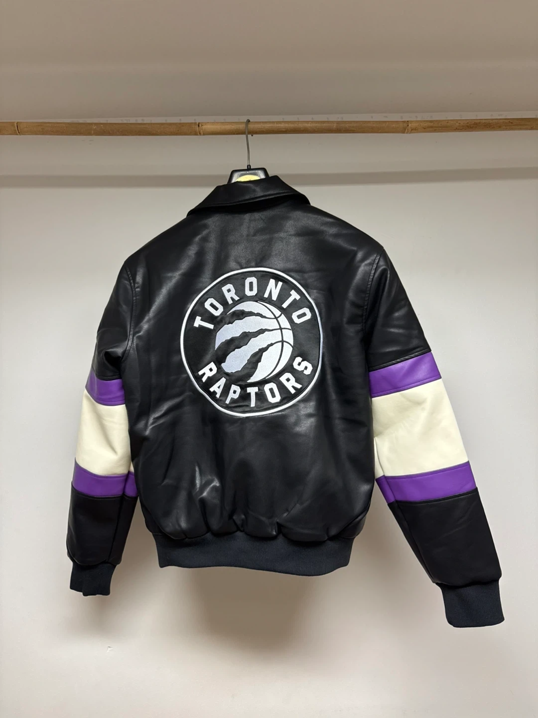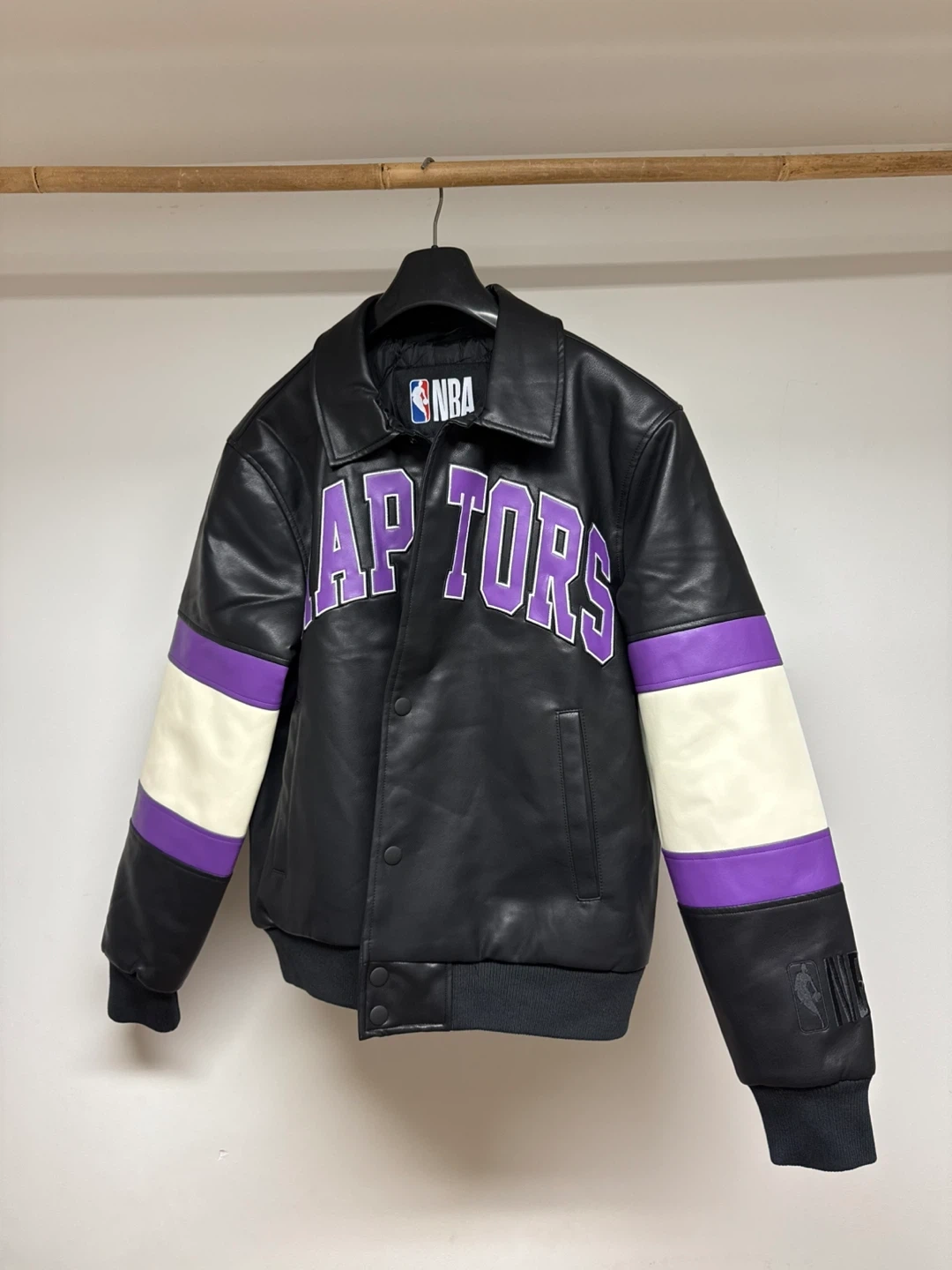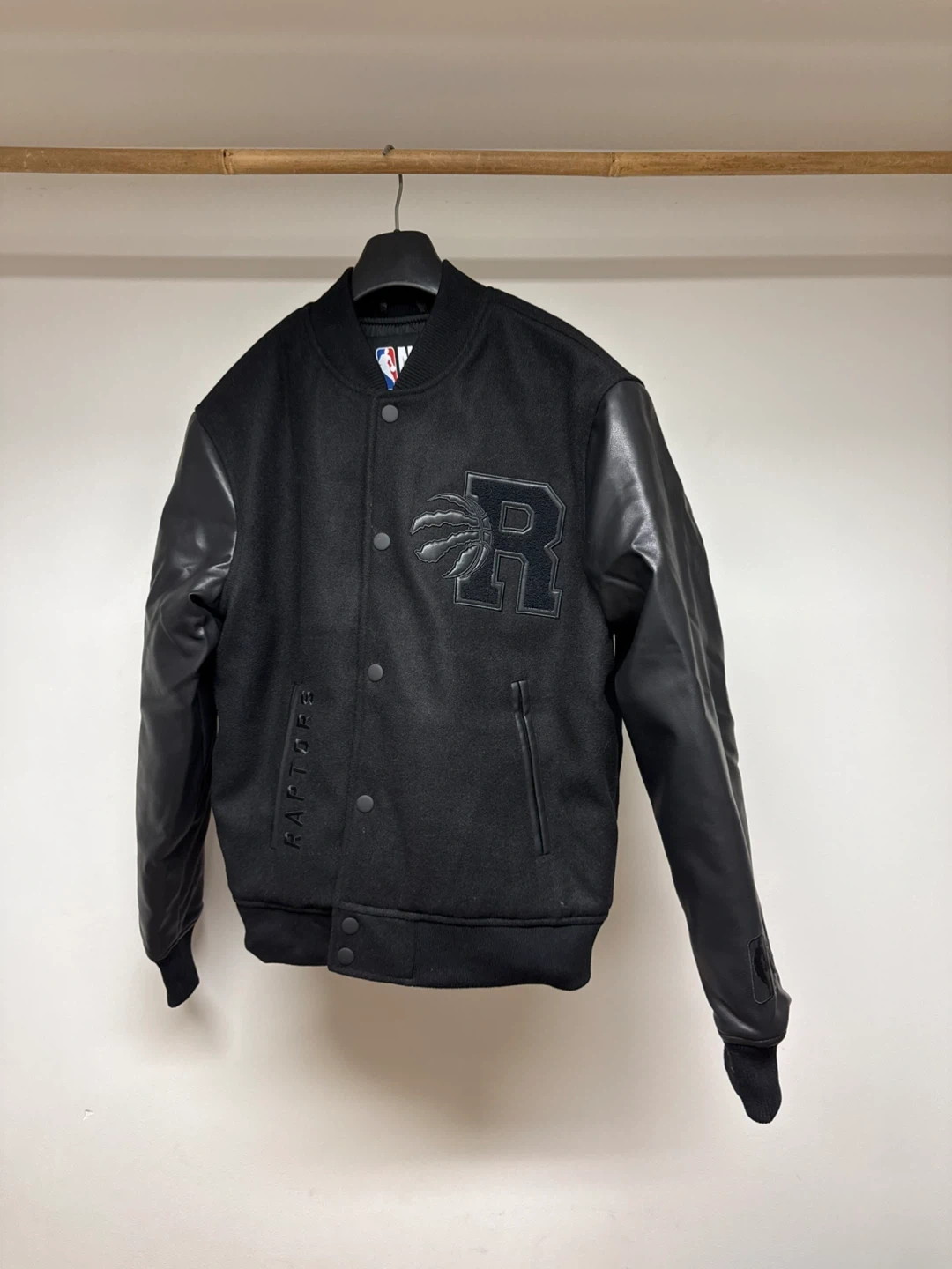 Selling a Toronto Raptors varsity jacket! It's black with leather sleeves and has the Raptors logo on the front and back. Size Medium Boyfriend is selling it