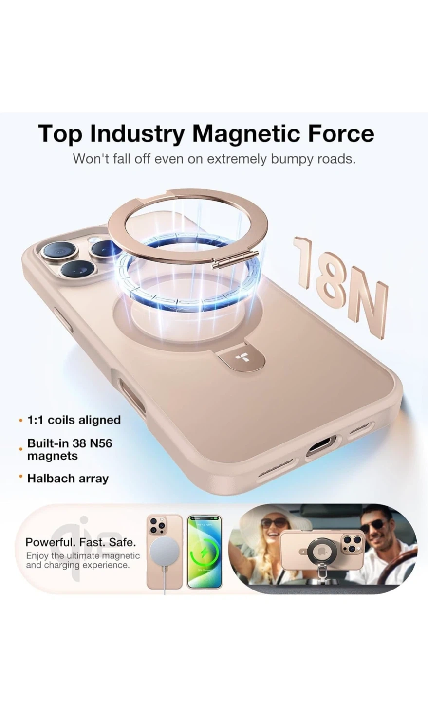 This TORRAS magnetic iPhone 16 Pro case is in new sealed box condition. The built-in 38 N56 magnets provide a strong magnetic force, so your phone won't fall off even on bumpy roads. It's designed with accessible and sensitive cutouts and has a skin-friendly touch and stain-resistant performance