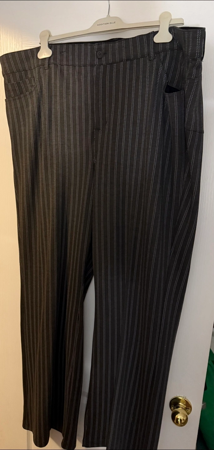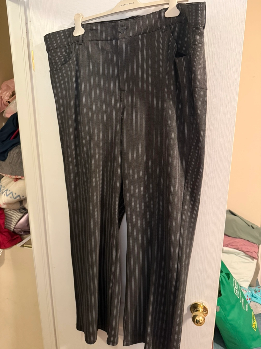 These are a pair of Torrid dress pants with a striped pattern. They are new!