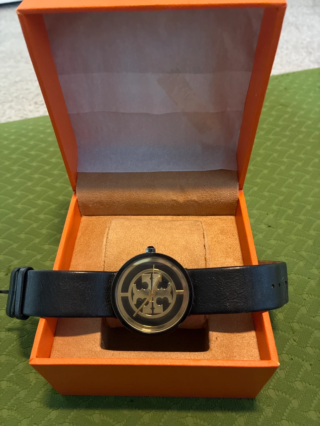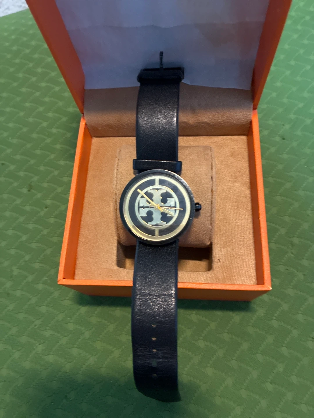 Selling an Authentic Tory Burch watch, model TBW4024. It comes in its original box. The watch has a black leather strap and a black face with the Tory Burch logo in gold. It's in good condition and amazing price to an appreciative new owner.