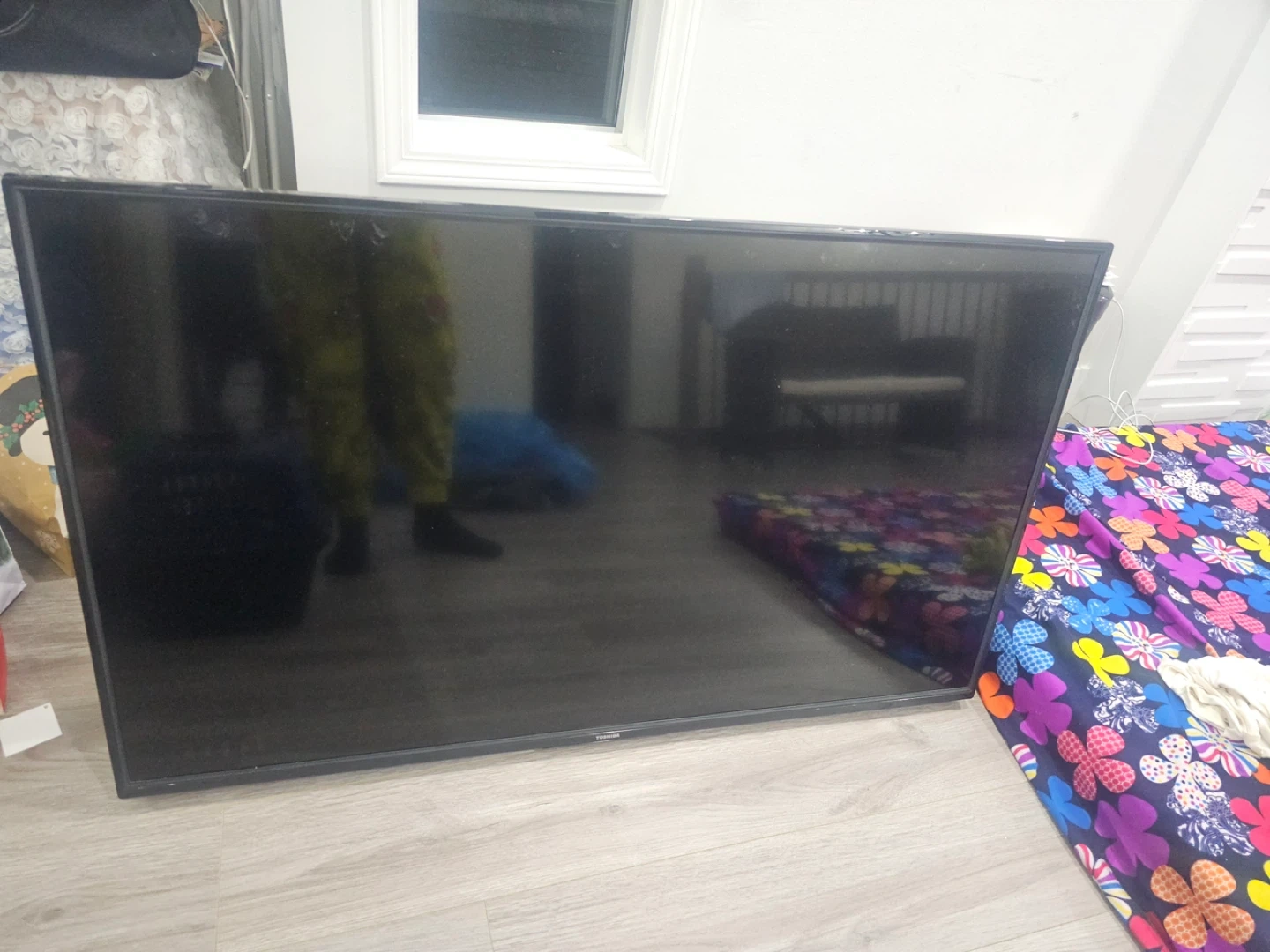 Selling a Toshiba TV. It's in good condition and ready for a new home. Perfect for watching your favourite shows or movies comes with a remote no legs for tv it was mount on the wall