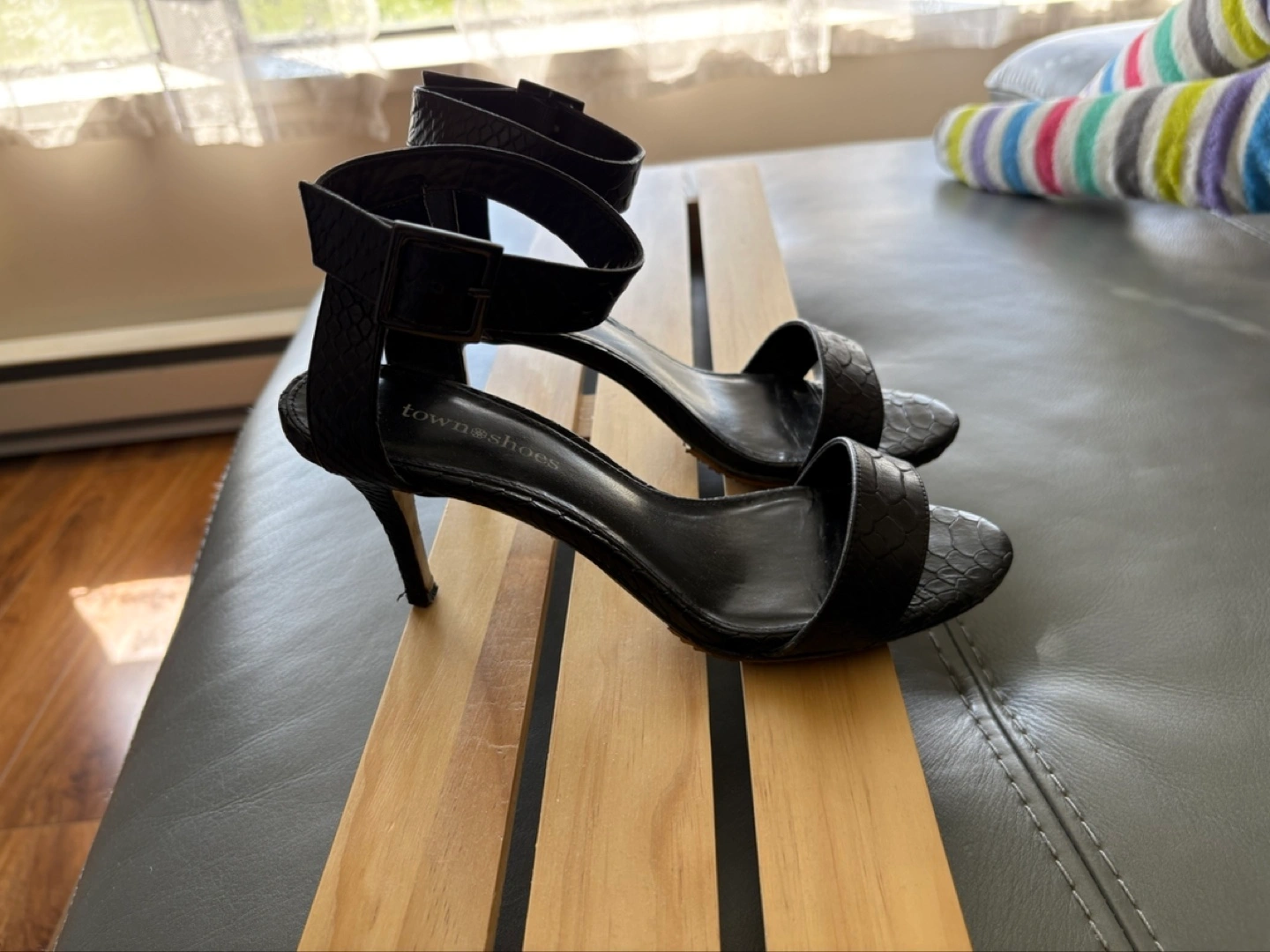 Elegant black heels. Ankle strap closure.