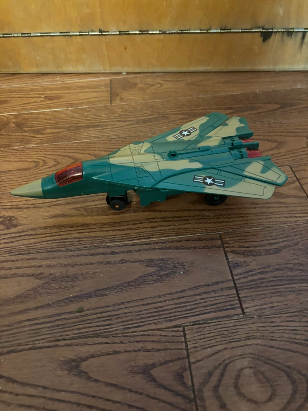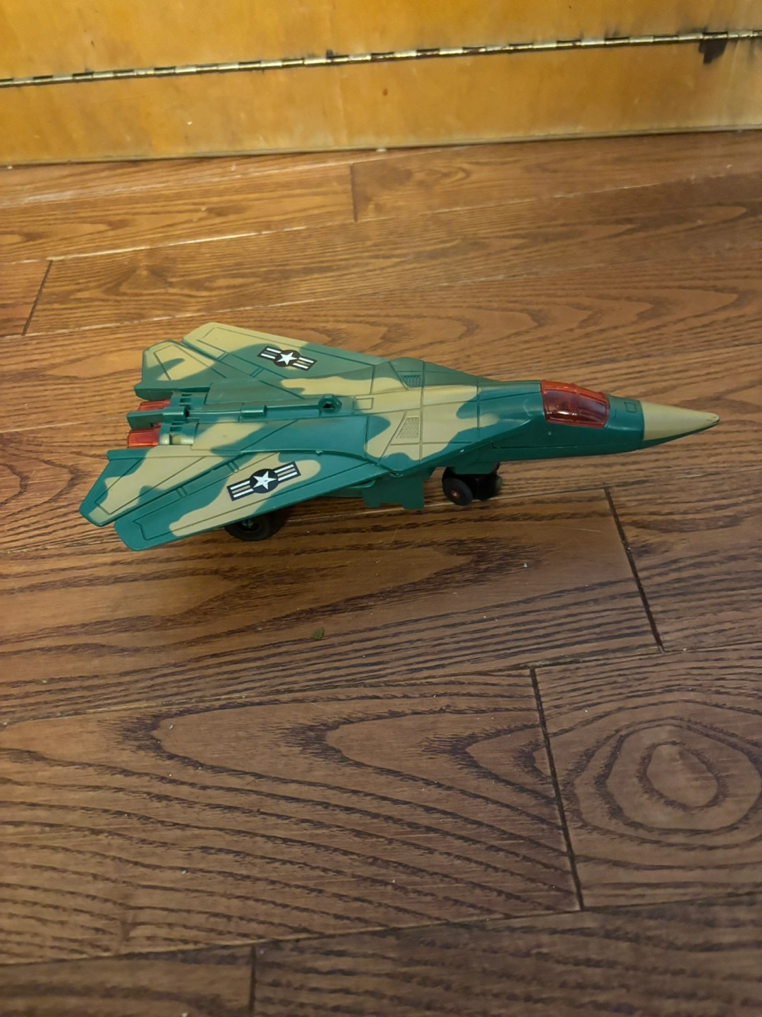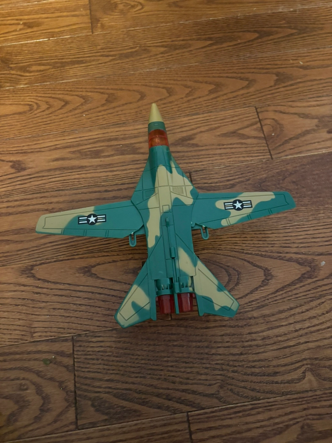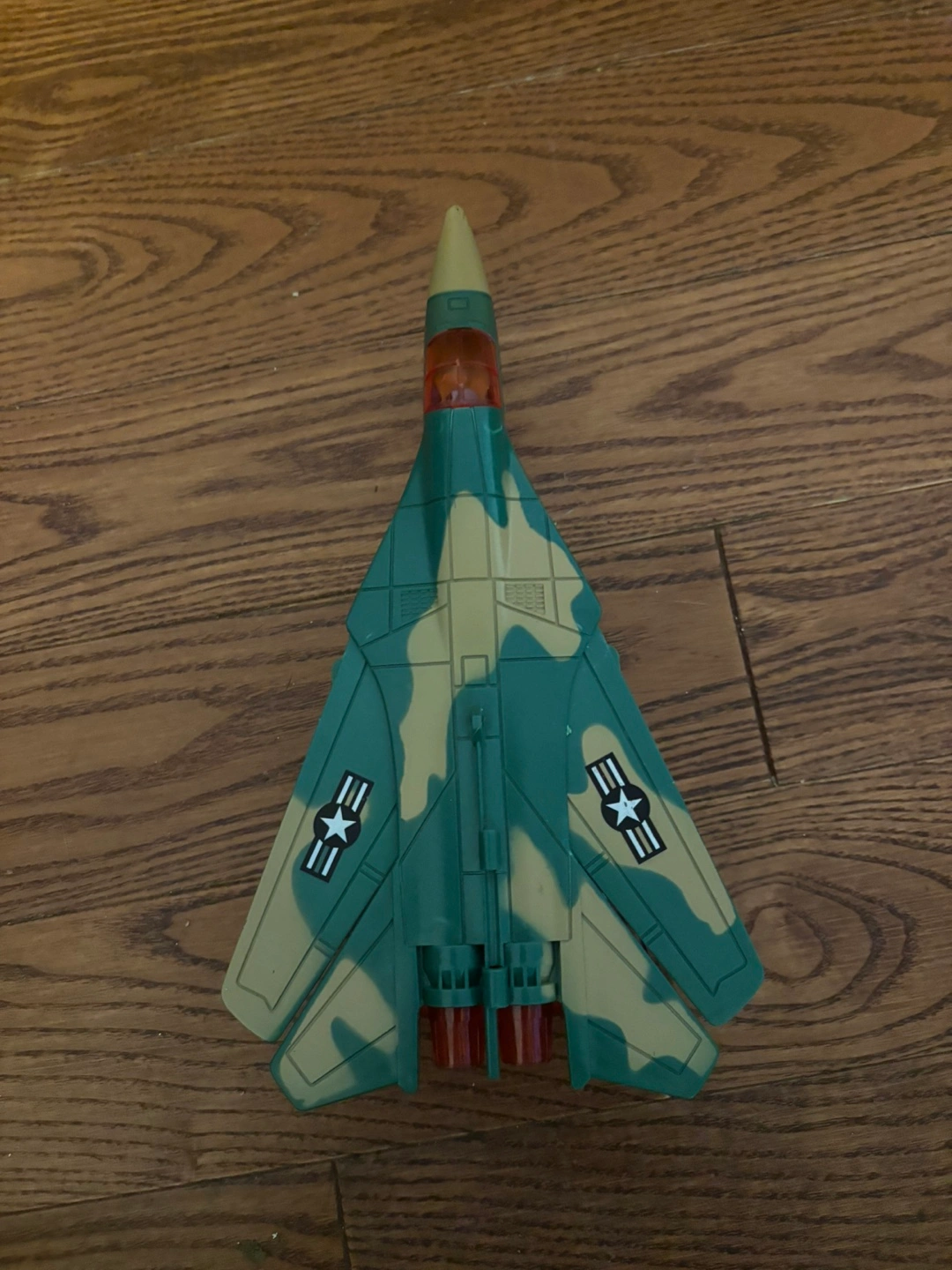 Selling a toy military fighter jet! It's in good condition and ready for a new home. It features a camouflage design and is perfect for kids who love airplanes and military toys